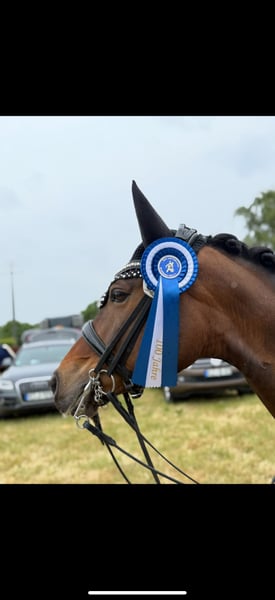 Zum Verkauf steht eine 12 Jährige deutsche Reitponystute, die in jeder Hinsicht überzeugt. Sie ist ein absolutes Kinderpony, immer brav und bemüht, alles richtig zu machen. Sie ist hocherfolgreich in der Dressur unterwegs, Seriensieger auf L Niveau und konnte sich dieses Jahr mit einem 13 Jährigen Mädchen zum Bundesnachwuchschampionat qualifizieren. Sie überzeugt vor allem durch ihre Leichtrittigkeit und Lektionssicherheit. Auch im springen überzeugt sie mit ihrer ehrlichen Art und konnte sich in der Klasse A bereits platzieren. Sie ist in jeder Situation ein absolutes Verlasspony. Das Pony kommt direkt vom Züchter und hatte selbst bereits 4 Fohlen. Aufgrund von Zeitmangel sucht sie jetzt eine neue Aufgabe. Videos auf Anfrage. Platz vor Preis!