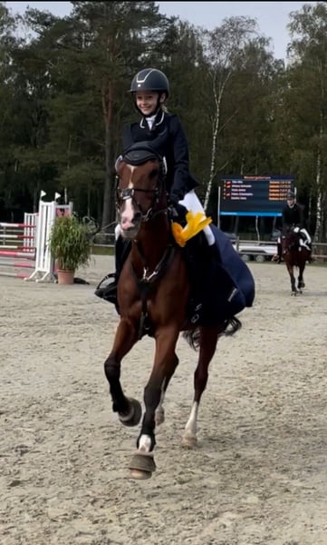 Dear Sport and Leisure Pony Gida is a 13-year-old pony mare bred in Holland, standing at 1.48 cm. She has a particularly lovely appearance. She is experienced in competitions and has been shown in dressage and especially in jumping by our children. In the course, she always shows motivation and has a good basic tempo, making her easy for children to ride through the course. She is an absolute dependable pony, whether in the arena, indoors, in the field, or in unfamiliar surroundings - she is always easy to handle. Gida loads particularly easily. Currently, she is stabled at night and on the paddock during the day. She can also be kept on pasture without any issues and is very compatible with other horses. As our daughter has outgrown her, we are looking for a new, loving home for Gida. If you are interested, please feel free to contact us by phone at 0173 4324180.