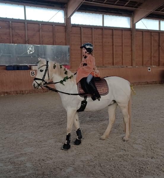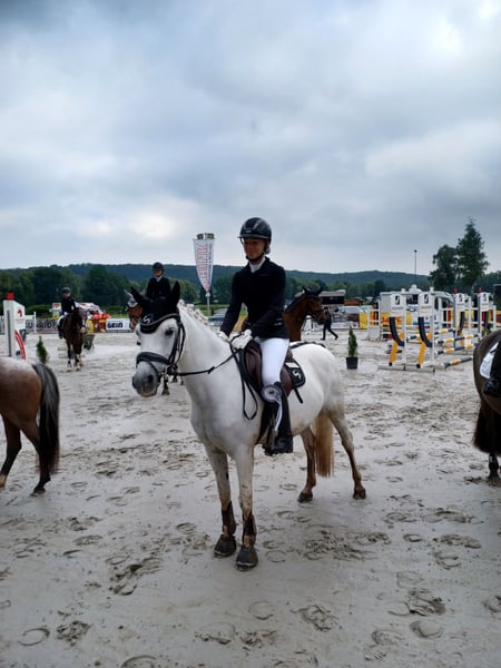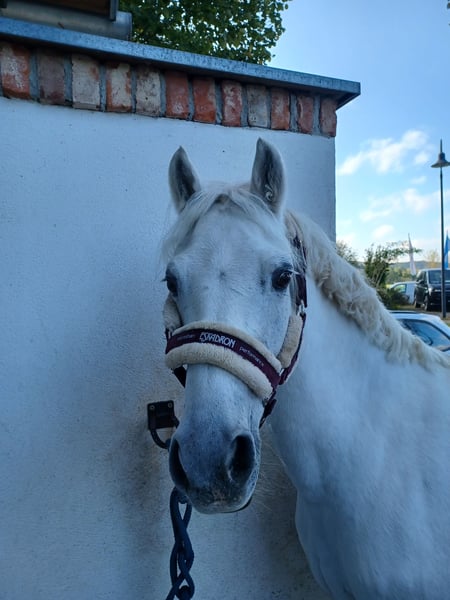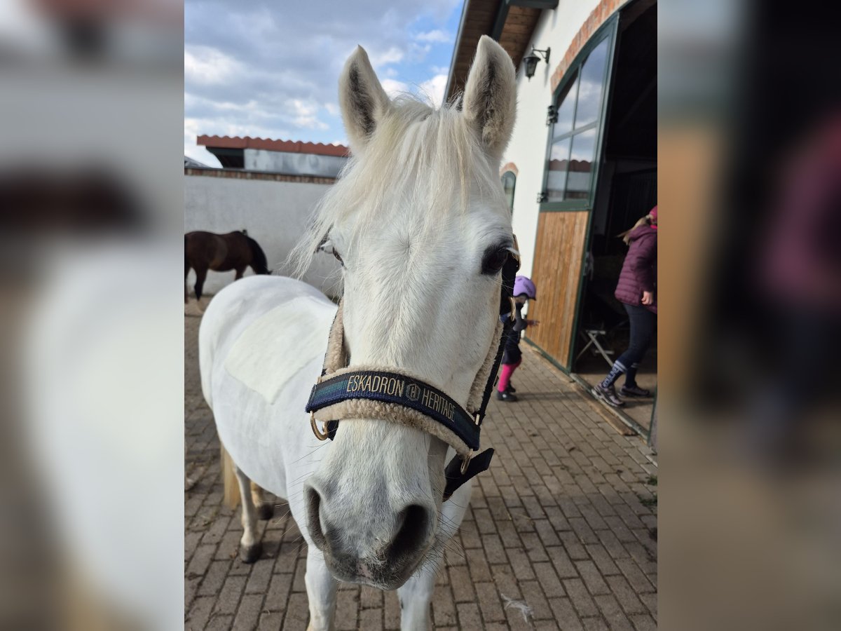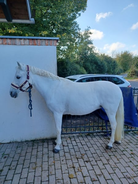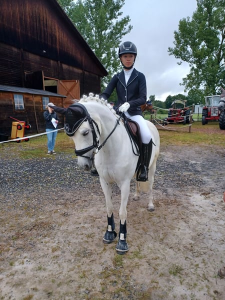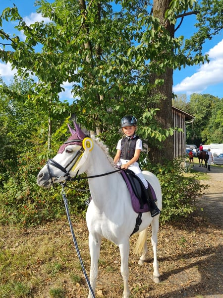 Verkaufe deutsches Reitpony – Stute, Schimmel, geb. 2010 Diese elegante Reitponystute überzeugt durch ihren starken Charakter und ihre vielseitigen Einsatzmöglichkeiten. Mit einem Stockmaß von 138 cm und ihrer Abstammung ist sie perfekt für den Dressursport geeignet. Freizeitreiter haben ganz sicher ihre Freude mit ihr, da Sie Ausritte liebt, auch durch Wasser läuft und gerne Bodenarbeit macht. Unsere Stute ist nicht als klassisches Anfängerpony geeignet, da sie sehr umweltorientiert ist und auch mal losrennen kann. Trotzdem hat unsere Tochter an der Longe auf ihr das Reiten gelernt. Wir sehen Sie als Jugendpferd (mit Trainer) oder für kleine Erwachsene, die Sattelfest sind und Durchsetzungskraft besitzen. Sie geht ins Gelände – auch allein –, kann dabei meist entspannt am langen Zügel laufen, aber auch hier mal etwas „flotter“ werden und mit einem Großpferd mithalten. Auf dem Platz und in der Halle arbeitet sie gut mit, wobei Dressur ihre Lieblingsaufgabe ist. Sie lässt sich von Kindern führen und putzen. Sie ist freundlich im Umgang, Schmiede- (Barhufer) und Verladefromm und regelmäßig geimpft/entwurmt. Zähne sind regelmäßig behandelt sowie Physio/Akupunktur vorgestellt. Sie leidet leider unter einem leichten Sommerekzem (Juckreiz, Pusteln). Dies hat Sie bisher nicht groß beeinträchtigt und kann auch den überwiegenden Teil im Jahr ohne Ekzemerdecke auf die Weide. Leichte Pollenallergie ebenfalls nur im Frühjahr bisher keine medikamentöse Behandlung notwendig. Ausbildung & Turniererfahrung: • 2024: Führzügelklasse, Reiterwettbewerb, E-Dressur und E-Springen gestartet und platziert, seitdem nur im Freizeitbereich unterwegs aufgrund Turnierreitermangel Sie wird regelmäßig im Reitunterricht geritten und kann erste Lektionen der Kl. L in der Dressur. Springen wird aktuell nur im niedrigen E Bereich ab und an mit ihr geritten. • Frühere Turniererfolge bis Klasse A** beim Züchter • Auch züchterisch hochinteressant: 7 Fohlen, alle prämiert • Selbst als Goldprämienfohlen ausgezeichnet Haltung bisher: Laufstall oder Sommerweide (bei Züchter) Aktuell Box mit Paddock und täglichem Koppelgang (In der Herde ist gerne ranghoch, ordnet sich aber dennoch unter, wenn es sein muss). Eine Grundausstattung (Halfter, Abschwitzdecke, Reithalfter, einfacher Dressursattel) kann mit abgegeben werden. Warum wir verkaufen: Unsere Tochter besitzt noch ein zweites Pony und schafft es zeitlich nur, eines regelmäßig zu reiten. Ich als Mama möchte gern auf Kleinpferdgröße umsteigen – deshalb suchen wir ein neues Zuhause mit aktiver Nutzung und viel Liebe. Kein Notverkauf!