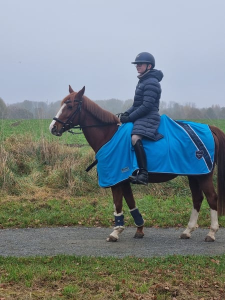 Zum Verkauf steht unsere 16-jährige Ponystute. Unsere Tochter ist letztes Jahr auf ein Großpferd umgestiegen und für das Pony inzwischen leider zu groß. Das Pony ist 144 cm und kennt Platz, Halle sowie Gelände und liebt es zu springen und lässt sich brav longieren. Sie ist mit unserer Tochter erfolgreich in diversen Reiterwettbewerben und E-Springen gegangen, hat mit Ihr gemeinsam das RA5 absolviert und wurde mit Ihr zu Springförderlehrgängen eingeladen. Das Pony kennt 24/7 Offenstallhaltung, sowie Boxenhaltung mit täglichem Paddock- bzw. Weidegang. Derzeit steht sie 24/7 auf der Weide und wird von unserer Tochter regelmässig bewegt. Wir wünschen uns für Sie eine nette Familie mit Kind(ern), die Sie genauso zu schätzen weiß wie wir. Für unsere Tochter war die Stute das erste eigene Pony, nachdem sie zuvor 4 Jahre im Schulbetrieb reiten gelernt hat. Wir könnten uns sehr gut vorstellen, dass das Pony wieder die Aufgabe übernimmt ein Kind an das erste eigene Pferd heranzuführen. Bei uns hat Sie das mit Bravour gemeistert. Bis Anfang letzten Jahres sind wir regelmässig zu Turnieren und Lehrgängen mit Ihr gefahren, haben das Verladen seit dem aber nicht mehr geübt. Das Pony hat einen grünen Pass und wird regelmässig dem Schmied (barhuf), dem Chiropraktiker, sowie dem Tierarzt zu turnusmässigen Impfterminen vorgestellt. WIR VERKAUFEN NICHT AN HÄNDLER ODER SCHULBETRIEBE, SONDERN NUR AN PRIVAT. Der o.g. Kaufpreis ist Verhandlungsbasis. Für uns steht im Vordergrund, dass das Pony in liebevolle Hände kommt. Hochwertiges Zubehör (neuer Bates Dressursattel, Prestige Springsattel) kann bei Bedarf mit erworben werden. Bei echtem Interesse freuen wir uns über eine Kontaktaufnahme; bitte bevorzugt über WhatsApp oder telefonisch unter 0173-881 36 74.