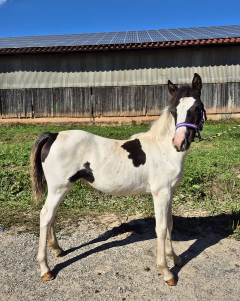 Lewitzer Mix x dt. Reitpony, braves Stutfohlen, schwarz-weiß