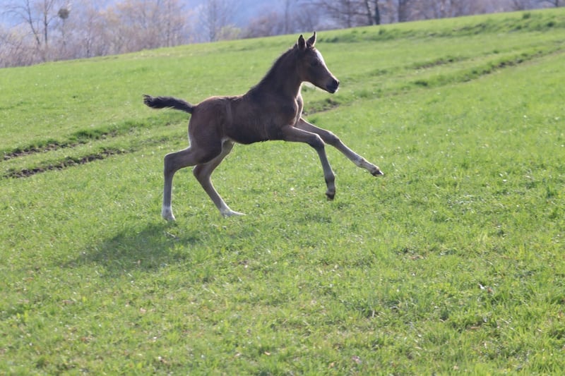 For sale is a very expressive riding pony mare. She will turn one year old in April. Her estimated final height will be around 148 cm. Her sire is the licensed riding pony stallion Rappenbergs Little Lord. Her dam is the registered mare Nania SD, sired by Neverland. Both parents are ideally suited as family horses. Due to her expressive gaits, I can already say that "Nice Girl" could also become an interesting sport partner. Nicy has a very striking buckskin coat. Of course, she is already accustomed to the farrier and loading onto the trailer. She is regularly vaccinated and dewormed.