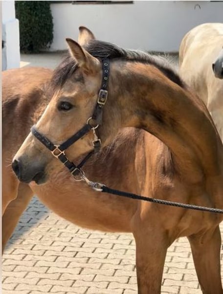 Zum Verkauf steht eine liebe, umgängliche Pony-Stute, die durch ihre Qualität und ihr korrektes Gebäude überzeugt. Vater Darf ich bitten NRW ist zweifacher Bundeschampion der Reitponyhengste, bekannt für seinen bildschönen Typ, sehr gute Grundgangarten und Rittigkeit. Muttervater Ampere (Deutsches Sportpferd) hat mehrere sporterfolgreiche Nachkommen in der Ponywelt. Mit Totilas (Deutsches Reitpony) befindet sich ein absoluter Allrounder auf der Mutterseite, der selbst in L-Springen und bis M-Dressur erfolgreich war. Die Stute zeigt sehr gute Grundgangarten, ist brav im Umgang und menschenbezogen. Sie bringt die besten Voraussetzungen für Sport oder Zucht mit. Mutter und Großmutter sind ca. 140cm, Stute wird Endmaß