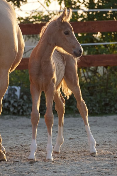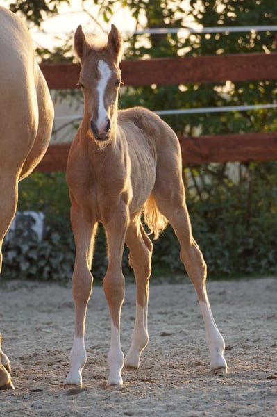 Palomino merrie, Duits Reitpony, jaarling, van FS Numero Uno