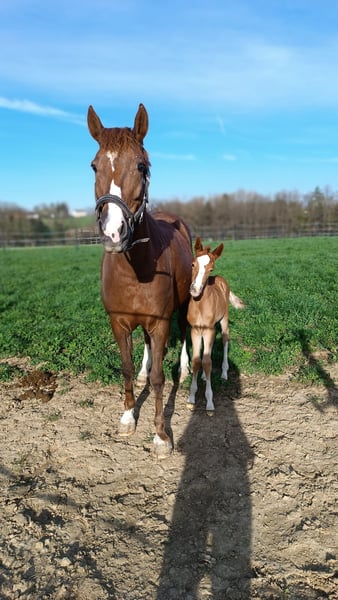 For sale: beautiful 2.5-year-old sport pony mare. Color: chestnut with a blaze and four white socks. The mother, see photo, is a dream in character, especially when out riding. She also shows great potential in dressage and jumping. Her sister was qualified for the Bundeschampionat and was a reserve champion. Can be backed next year upon request, or can also remain in training! Very noble type. Familiar with the farrier and everything else.