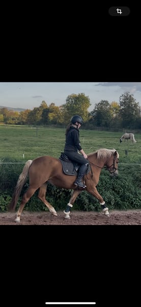 Neues Zuhause 🏡 sucht eine 3-jährige Connemara x Deutsches Reitpony mix Stute mit einem aktuellen Stockmaß von ca. 1,44 m. Sie wächst natürlich noch. Deckt auch super größere Reiter ab, bin selbst 1,70m… Sie geht bereits sicher Schritt, Trab und Galopp in der Halle und auf dem Platz. Freispringen kennt sie und springt dabei locker 1,05 m. Auch das Gelände ist ihr bekannt, dort zeigt sie sich sehr brav und unkompliziert. Sie ist im Umgang lieb und unkompliziert und bringt tolle Voraussetzungen für Freizeit, Springen oder Vielseitigkeit mit. Preis steigt bei weiteren Ausbildung Bei Interesse gerne melden.