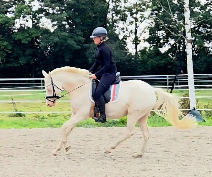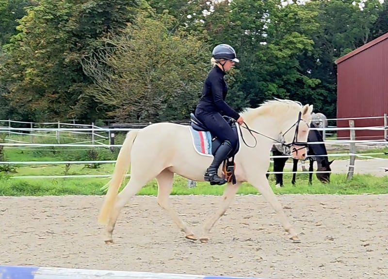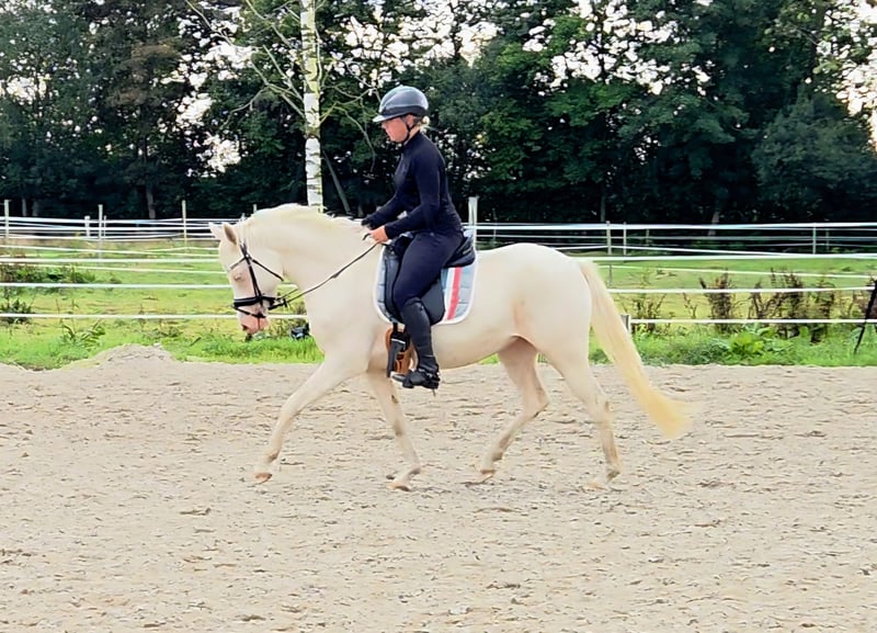 Hello, If everything fits, I would give my princess into good hands. Cinderella was born with me and has always been a friendly and curious pony. She is now 4 years old and 146 cm tall. She has enjoyed her youth and has grown up calmly. She has participated in a mare show. She is registered and measured. So she will remain in pony size. Cinderella lives on a large farm where there is always something going on. Therefore, she knows a lot. She is completely uncomplicated and very sweet. Cinderella has been lunged, knows the saddle, bridle, and rider weight. She is now being started under saddle. With further training, she will definitely make a great children's and competition pony. She has never been sick. Her teeth were done in June. A vet check will be done upon sale. Unfortunately, my life circumstances are forcing me to take a different path.