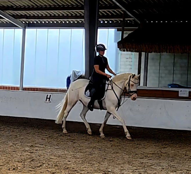 Hallo, Als alles in orde is, zou ik mijn prinses graag in goede handen afgeven. Cinderella is bij mij geboren en was altijd een vriendelijk en nieuwsgierig pony. Ze is nu 4 jaar oud en 146 cm groot. Ze heeft haar jeugd genoten en is rustig opgegroeid. Ze was vorige week op de merriekeuring en is gemeten. Cinderella staat op een grote boerderij waar altijd veel te doen is. Ze is volledig ongecompliceerd. Cinderella is aangereden, kent zadel, hoofdstel en ruitergewicht. Ze is nog nooit ziek geweest. Haar tanden zijn deze maand gedaan. Momenteel staat ze voorop op ijzers vanwege de merriekeuring, anders loopt ze blootvoets. Helaas dwingen mijn levensomstandigheden me om andere wegen in te slaan.