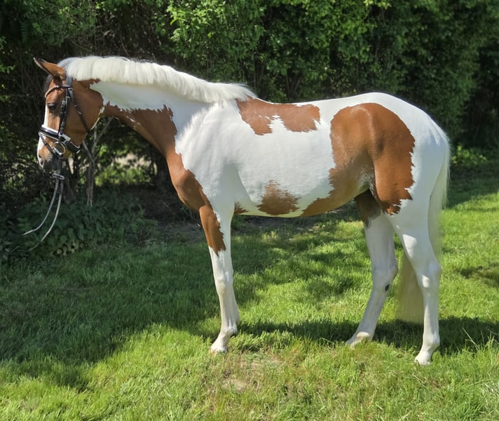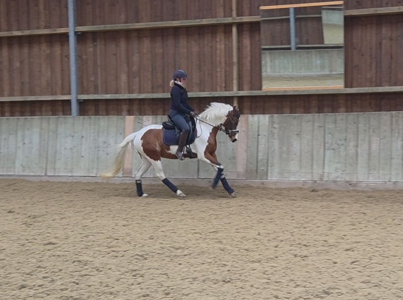 Farbenspiel ist eine bezaubernde vierjährige Tochter des dressur-erfolgreichen S** Für immer Du aus einer Mondprinz-Mutter. Sie verfügt über drei gute Grundgangarten und hohe Rittigkeitswerte. Sie möchte jeden Tag gefallen und hat von Anfang an nie einen falschen Schritt gemacht. Farbenspiel lernt unglaublich schnell, ist stets motiviert und besitzt trotz ihres noch jungen Alters eine beeindruckende Coolness. Sie wurde mit drei Jahren schonend angeritten und durfte dann von Juni bis Dezember noch einmal auf der Weide reifen. Seit Anfang Januar ist sie wieder unter dem Sattel und hat in kurzer Zeit gezeigt, dass sie nichts verlernt hat. Im täglichen Umgang sowie unter dem Reiter zeigt sie sich sehr unerschrocken und neugierig. Hier wächst ein ganz besonderes Familien- und Kinderpony heran. Auch gegenüber anderen Pferden ist sie stets freundlich. Derzeit lässt sie sich in allen drei Grundgangarten artig reiten, ist alleine auf- und absteigen sowie vom Reitplatz zum Stall reiten problemlos möglich. Auch das Reiten mit anderen Pferden in der Bahn stellt für sie kein Problem dar. Sie ist regelmäßig entwurmt und geimpft. Ein Probereiten ist bereits möglich.