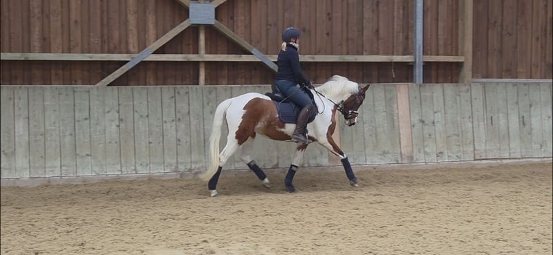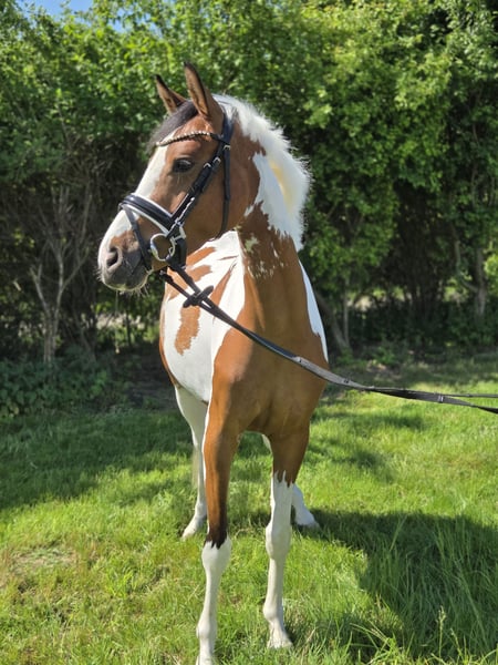 Farbenfroh ist eine bezaubernde 4 Jährige Tochter des S** Dressur erfolgreichen Für immer Du aus einer Mondprinz Mutter. Sie ist ausgestattet mit drei guten Geundgangarten und hohen Rittigkeitswerten. Sie will jeden Tag gefallen und hat von Beginn an, nie einen falschen Schritt gemacht. Farbenfroh lernt unheimlich schnell, ist stets motiviert und trotz ihrem noch jungen Alters mit einer unglaublichen coolness ausgestattet. Sie wurde 3 jährig schonend angeritten und durfte dann von Juni bis Dezember nochmal aug der Weide "reifen". Nun ist sie seit Anfang Januar wieder unterm Sattel und hat in der kurzen Zeit gezeigt dass sie nichts verlernt hat. Im täglichen Umgang und auch unterm Sattel zeigt sie sich sehr unerschrocken und neugierig. Hier reift ein ganz besonderes Familien-/ Kinderpony heran. Auch zu anderen Pferden ist sie immer freundlich. Aktuell lässt sie sich in allen drei Grundgangarten artig reiten, man kann alleine auf- und absteigen, sowie von der Halle zum Stall reiten. Auch andere Pferde mit in der Reitbahn sind für sie kein Problem. Sie ist regelmäßig entwurmt und geimpft. Eine Probereiten ist auch bereits möglich.
