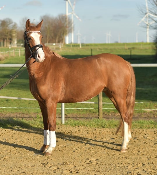 **Zum Verkauf: Calida – die liebevolle Reitpony-Stute!** Wir stellen Ihnen Calida vor, eine charmante deutsche Reitpony-Stute, die wir im Sommer roh bekommen haben. Nach einer kurzen Gewöhnungsphase haben wir nun seit drei Wochen das Vergnügen, mit ihr zu arbeiten. Calida zeigt sich bereits jetzt als wahres Talent: Sie läuft brav und sicher auf dem Reitplatz – ganz ohne Longe und sogar auf fremden Plätzen! Ihr ruhiges und freundliches Wesen macht sie zu einer idealen Partnerin, besonders für Kinder. Wir sind überzeugt, dass sie ein wunderbares Turnierpony werden kann. Zusätzlich hat Calida einen Röntgentüv ohne Befund und ist gesundheitlich einwandfrei. Auch im Gelände zeigt sie sich von ihrer besten Seite und meistert kleine Runden mit Leichtigkeit. **Vorreiten:** Das Vorreiten dieses tollen Ponys kostet 30 €. **Sonderangebot:** Bei sofortiger Mitnahme gewähren wir 5 % Rabatt auf den Kaufpreis! Wenn Sie auf der Suche nach einem liebevollen, talentierten Pony sind, das das Potenzial hat, ein echtes Kinderliebling zu werden, ist Calida die perfekte Wahl! Kontaktieren Sie uns für weitere Informationen oder einen Besichtigungstermin.
