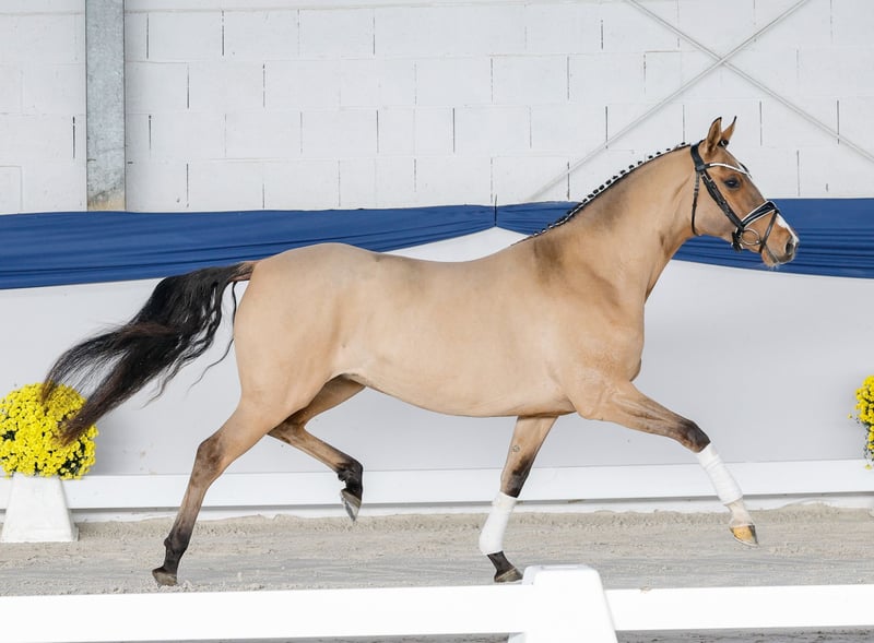 In unserer Kollektion stehen streng selektierte Youngster f�r alle Anspr�che: Ausbildungs-, Zucht- und Kinderponys Hier gelangen Sie zur Gesamtkollektion: https://ponyforum.auction Die dreijährige Braunfalbstute Date Vision AT ist eines der Top Models der Kollektion! Sie konnte im Sommer anlässlich der Elitestutenschau im rheinischen Wickrath schon auf ganzer Linie überzeugen und wurde mit der Staatsprämie ausgezeichnet. Ihr Vater Date de Luxe AT gewann das Bundeschampionat und ihre Mutter StPrSt Deluxe Vision stellt schon mehrere prämierte Nachkommen. Date Vision AT ist eine hypermodern aufgemachte Schönheitskönigin mit riesigem Bewegungspotential Ein geniales Ausbildungspony für Sportreiter! Direkt vom Züchter.