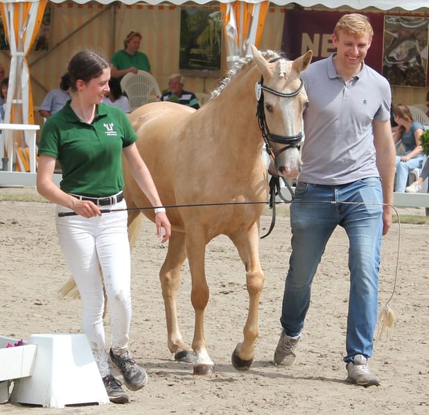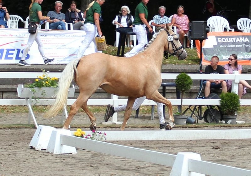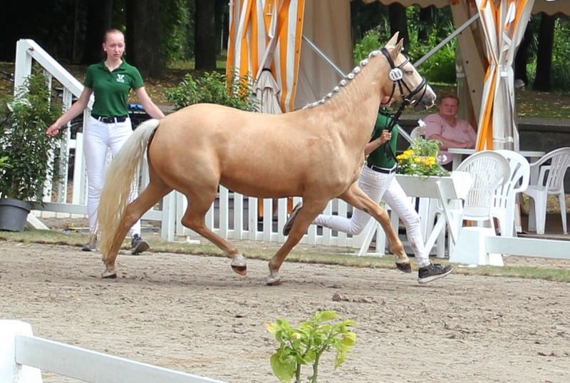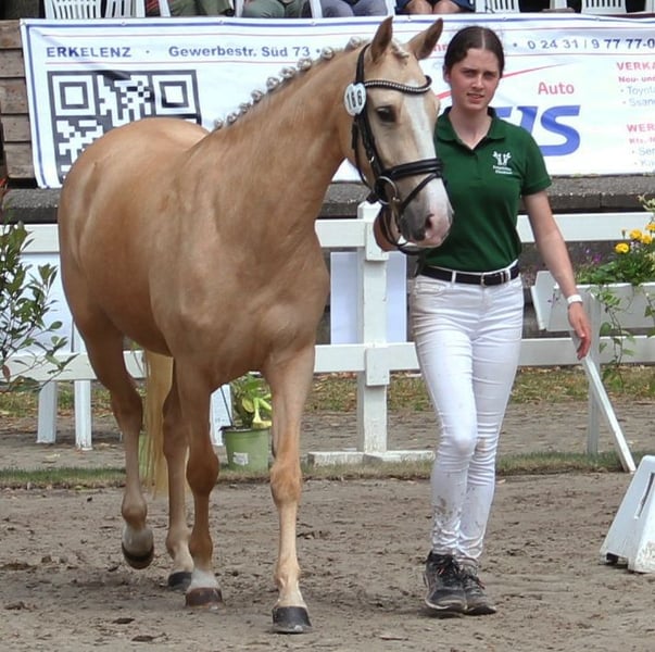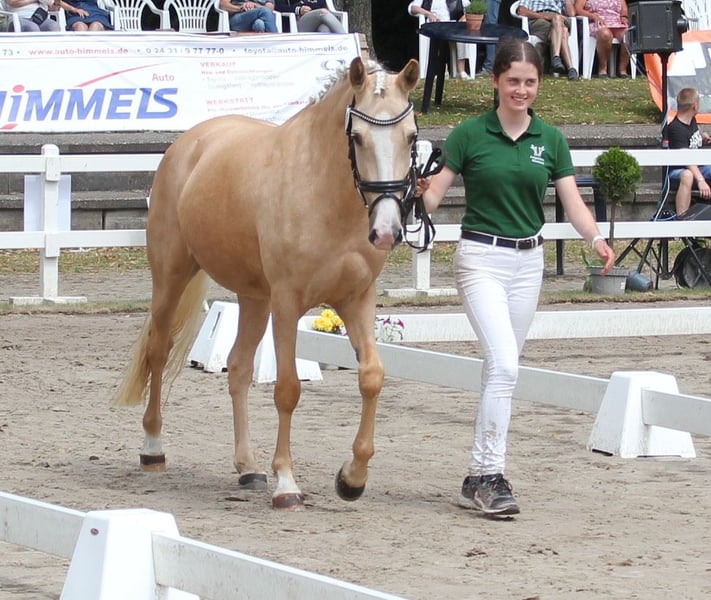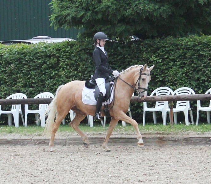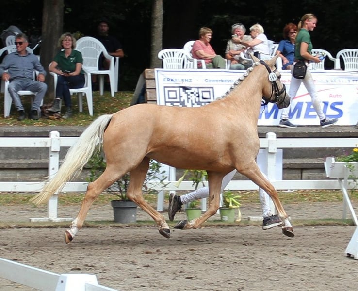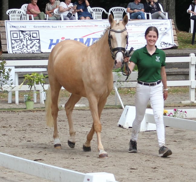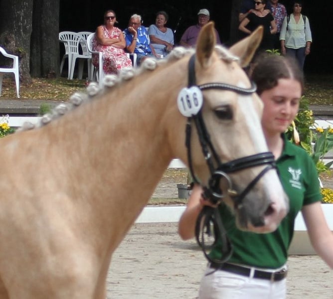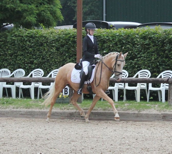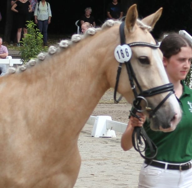 Verkaufe Deutsche Reitpony-Stute – Perfekt für Dressur! Zum Verkauf steht eine wunderschöne deutsche Reitpony-Stute, geboren im Jahr 2020. Sie besticht durch ihr elegantes Palomino-Fell und ihre beeindruckende Größe von 144 cm Stockmaß. Die Stute ist ideal für den Dressursport geeignet und zeigt viel Talent sowie eine angenehme Bereitschaft. Sie ist gut ausgebildet, aufmerksam und lässt sich leicht reiten. Bei Interesse oder für weitere Informationen stehe ich Ihnen gerne zur Verfügung. Ein Besichtigungstermin ist nach Vereinbarung möglich. 01722527384 https://www.gestuet-boenniger.de/antigone-b