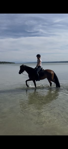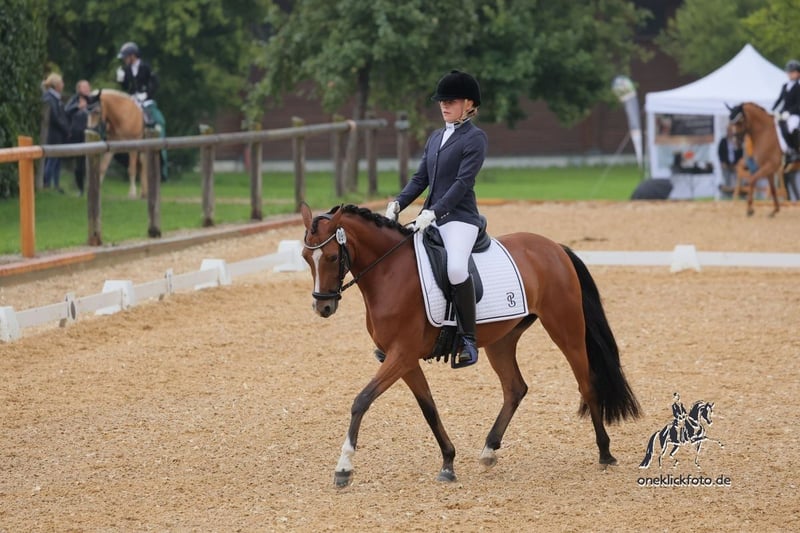Dancing Queen besticht nicht nur mit ihrem Aussehen sondern auch mit ihrem tollen Charakter. Sie konnte sich bereits auf ihrem zweiten Turnier an dritter Stelle in einer A Dressur platzieren. Sie ist kopfklar und im Umgang unfassbar brav. Diese vielversprechende Stute zeigt sowohl in der Dressur als auch im Springen großes Potenzial. Sie lässt sich schön mit Ausbindern reiten, geht brav ins Gelände, sowie ins Wasser. Sie war bei uns noch nie krank! Sie wird aufgrund ihres Alters noch nicht als Anfänger- oder reines Kinderpony abgegeben und sollte immer von einem stärkeren Reiter mit geritten werden. Dancing Queen sucht nun ein liebevolles neues Zuhause, wo sie weiter gefördert und gefordert werden kann. Natürlich wurde sie regelmäßig entwurmt, geimpft, Zähne gemacht, Physio und Hufschmied vorgestellt. Klinische AKU wurde im April letzten Jahres gemacht so wie Bilder von Rücken und Hals. Gerne können sie auf eigene Kosten eine aktuelle AKU machen lassen. Gegen Aufpreis kann ein angepasster Prestige Lucky Dressage Sattel mit übernommen werden. Bei Interesse oder für weitere Informationen können Sie sich gerne melden. Wir freuen uns auf Ihre Anfrage! Über WhatsApp erreichen sie mich unter 015510330752 Telefonisch oder per SMS unter 01737951567