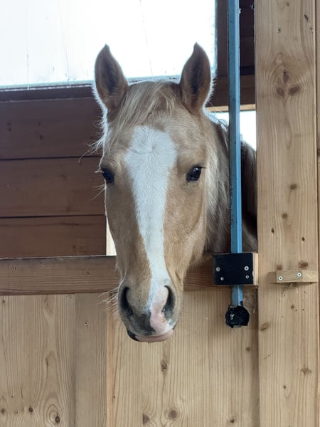 Wij zijn op zoek naar liefdevolle en zorgzame handen voor onze 5-jarige Duitse rijponystute. De merrie is waarschijnlijk drachtig van Crown NoRiskNoFun (FS Numero Uno x Monte Christo) en wordt verwacht eind april 2026 te bevallen. Ze komt voort uit Top Champion x Going East en is afkomstig uit de directe moederlijn van Grazia WE. Uit deze moederlijn komen talrijke kampioensveulingen, SLP-winnaressen en gekeurde hengsten; ook de huidige Siegerhengst van Westfalen komt uit dezelfde lijn. Maar liefst drie hengsten uit deze moederlijn werden op 6 december 2025 gekeurd in Westfalen! De merrie is geboren in 2020, ongeveer 1,46 m groot, en is niet bereden. Ze is op driejarige leeftijd aangeleund voor de stamboekinschrijving (prijskampmerrie) en kent uitbinder en singel. In 2024 en 2025 bracht ze al twee uitstekende veulens voort, die bij ons te zien zijn. Haar nakomelingen groeien correct op en komen tot hun uiteindelijke maat. Ze is rustig en ontspannen in de omgang, oprecht en vriendelijk naar mensen toe, en uitstekend opgevoed. Tanden zijn verzorgd, recent gevaccineerd en ontwormd!