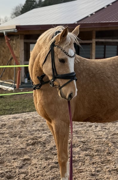 Wir sind auf der Suche nach wertschätzenden Händen für unsere 5j deutsche Reitponystute. Die Stute ist sicher tragend von Crown NoRiskNoFun (FS Numero Uno x Monte Christo) für Ende April 2026. Sie stammt ab von Top Champion x Going East und entspringt dem direkten Mutterstamm der Grazia WE. Aus der direkten Mutterlinie kommen zahlreiche Championatsfohlen, SLP Gewinnerinnen und gekörte Hengste, auch der aktuelle westfälische Siegerhengst entspringt dem direkten Mutterstamm. Direkt drei Hengste aus dem u Mutterstamm wurden in Westfalen am 06.12.25 gekört! Die Stute ist 2020 geboren, circa 1.46m groß und nicht geritten. Sie wurde für die Stutbucheintragung (Prämienstutenanwärterin) dreijährig anlongiert und kennt Ausbinder und Gurt. Sie hatte 2024 und 25 bereits zwei überragende Fohlen, diese können bei uns besichtigt werden. Die Nachkommen stehen korrekt und wachsen ins Endmaß. Sie ist im Umgang ruhig und gelassen und dem Menschen gegenüber aufgeschlossen und freundlich und bestens erzogen. Zähne sind gemacht, frisch geimpft und entwurmt!
