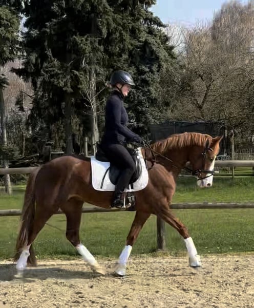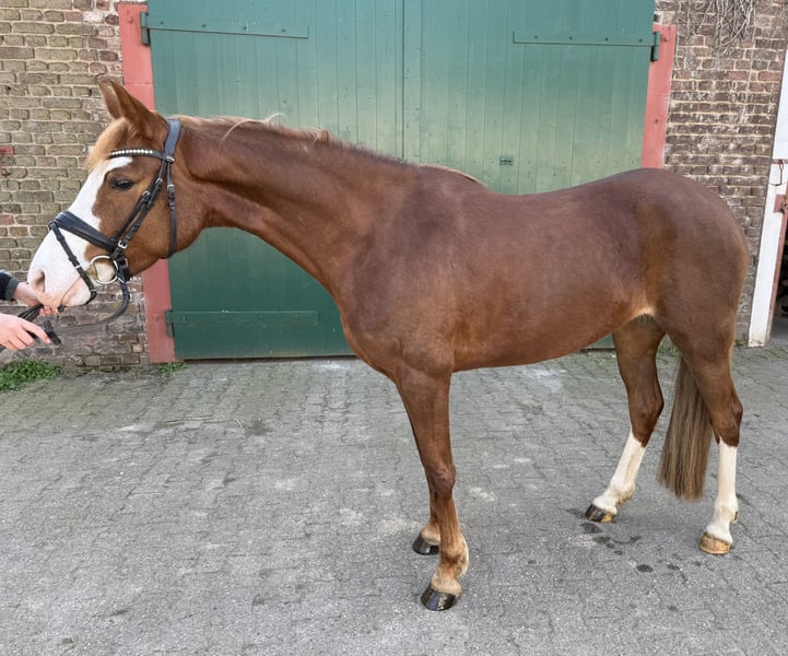 Zum Verkauf steht unsere selbstgezogene, 5-jährige Fuchs-Ponystute Peggy mit viel Charme und Qualität. Die Stute überzeugt durch ihre ansprechende Erscheinung und ist ein echter Hingucker. Sie befindet sich auf einem guten Stand der Grundausbildung, ist weich in der Anlehnung und zeigt sich stets lernwillig und motiviert unter dem Sattel. Aktuell misst sie ca. 146 cm und wird voraussichtlich im Ponymaß bleiben. Aufgrund ihres Ausbildungsstandes und ihrer Rittigkeit könnte sie bereits in dieser Saison erfolgreich in A-Dressuren vorgestellt werden. Zudem springt sie brav einen kleinen Parcours und zeigt auch hier vielversprechende Ansätze. Abstammung: Pinocchio Prince x Martini Wegen ihres Alters und Ausbildungsstandes ist sie kein Anfänger- oder Kinderpony. Sie benötigt einen erfahrenen Reiter, der ihr Sicherheit gibt. Sie sucht einen feinrittigen Reiter, der sie weiter fördert und ihr Potenzial im Turniersport ausschöpft. Leider fehlt uns aktuell die Zeit bzw. der passende Reiter, um sie turniermäßig vorzustellen. Bei Interesse freuen wir uns über eine Nachricht.