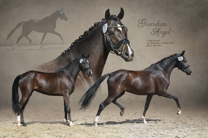 Unique opportunity: Due to a change in breeding focus, we are offering this exquisite broodmare for sale. Angel was in professional training for six months and has since been used exclusively for breeding. She placed 3rd at the Elite Mare Show and was the winner of the SLP mare class, impressing especially in jumping and rideability. She has a very promising black colt by the stallion PH No Problem at her feet and is currently pregnant by him again. Angel is being offered solely due to lack of a rider and a shift in breeding plans. She could certainly make a very good riding pony once re-trained. A sale including the foal is possible immediately, and the return of the foal could also be considered. Her color is Smokey Black, which could not be selected.