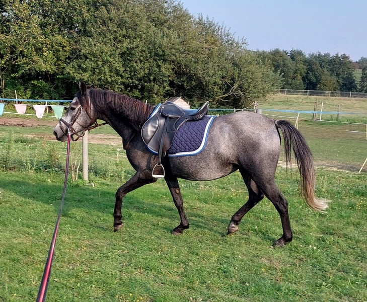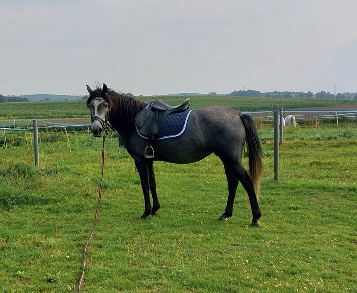 For Sale: German Riding Pony Mare Up for sale is a beautiful German Riding Pony mare, born in 2020. She has already learned quite a bit on the lunge line and is very gentle during training. However, I simply do not have enough time to continue her education. Therefore, I am looking for a new home for Fine. Fine is regularly vaccinated and dewormed.