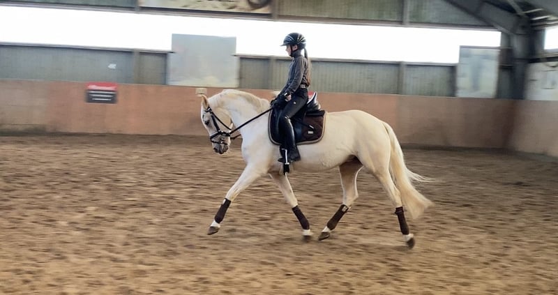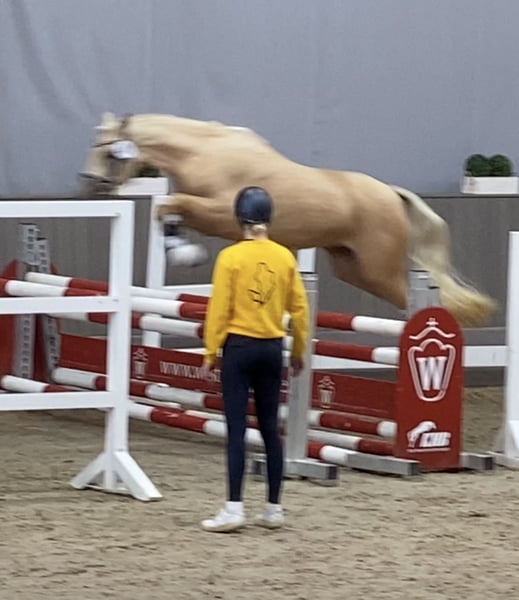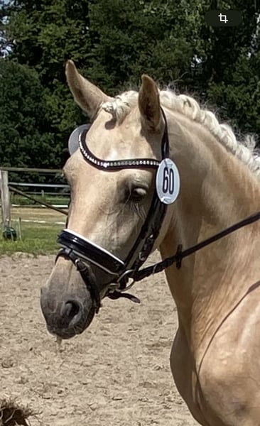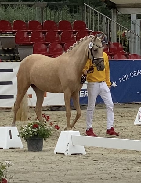 From our own breeding and training, we are offering a dream pony for the whole family. Tara tells you about herself... Description: I am a pony to fall in love with because I am: Loving, cuddly, and have a wonderful character, and I am not spooky. What I like: I love munching hay (you’re welcome to sit with me in the hay), and I enjoy being groomed to the fullest. Cuddling is my favorite. I’m also happy when I can be out in the pasture. What I already can do: At just 4 years old, I was invited to the Federal Foal Show in Münster. There, I was able to show that I can already perform a good dressage test with my rider (in the large championship arena), and I also do well in jumping. That’s why I was also placed in the competition for versatile riding ponies (the young ponies). I also presented myself at the State Championship – it rained cats and dogs, really terrible – but I bravely completed my tasks. I am a fighter! 😍 I really enjoy competing at shows – it’s a lot of fun for me. I am currently doing dressage and will soon start in class L. My sporting future: Since my mother was a very successful competition pony for a long time, I also want to compete in FEI classes someday. What I don’t like: When I am forgotten or when I am not allowed to go out to the pasture. My wish: I am always waiting for my people and hope to find a wonderful family. I’d love to make a child or, even better, the whole family happy. Feel free to visit me – you can also arrange an appointment with my breeder: 0173 6782519 Susann Heise