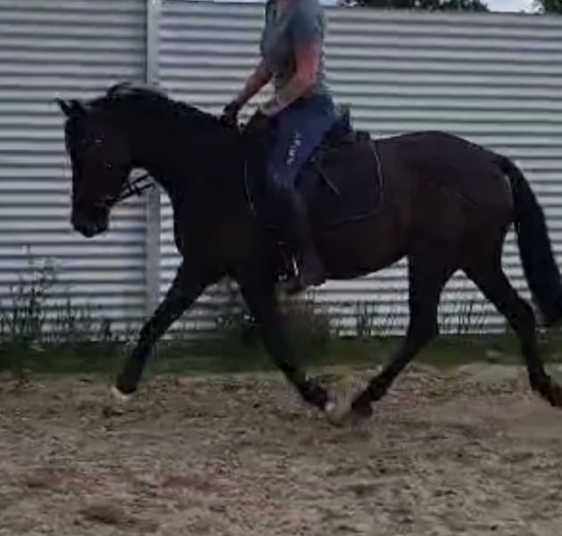 German Riding Pony Mare for Sale For sale is a beautiful German Riding Pony mare, born in 2020. She is dark bay and measures 148 cm at the withers. With her friendly temperament and elegant appearance, she is suitable for both leisure riding and competition. She is already registered with the FN. The mare is well-started under saddle and has already shown her ability to jump. She is well-behaved and demonstrates great potential for further training. Please feel free to contact me for more information or if you are interested.