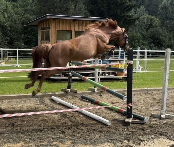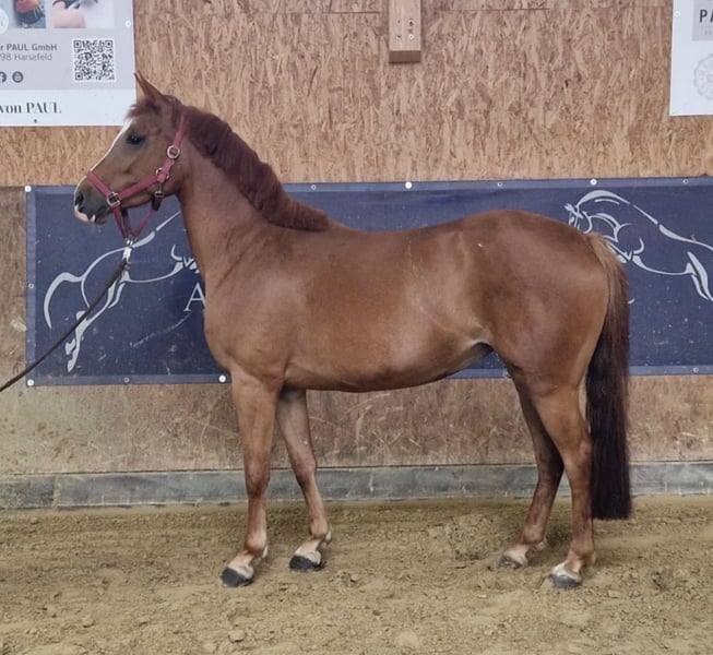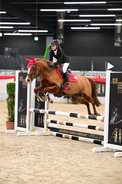Exceptional pony with outstanding quality for competitive pony sport. Viva Moonlight is a 7-year-old German Riding Pony mare. Standing at 148 cm, she is exactly within the pony size range. She has competed up to 105 cm at shows. Last year marked her first competition season, during which she impressed with only faultless rounds. A pony of remarkable quality, extremely careful, and never makes mistakes. She is a pleasure to ride in dressage and well-trained. In handling, she is very calm and uncomplicated. A recent veterinary report with excellent X-rays is available.