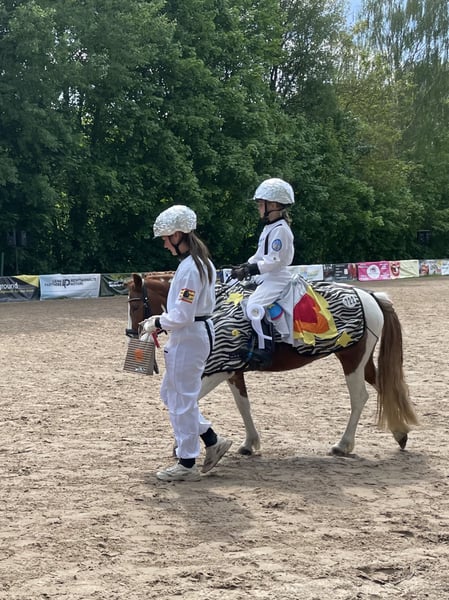 With a heavy heart, we have to part ways with our mare Muffin. Muffin is full of energy, which she particularly demonstrates in the jumping arena, yet she is manageable and easy to handle. She is suitable for anyone looking for fun, and besides jumping, she also enjoys hacking out. She has competed up to E-level at tournaments with increasing difficulty, but she also enjoys lead-rein classes and jump and run events. Further details gladly provided privately.