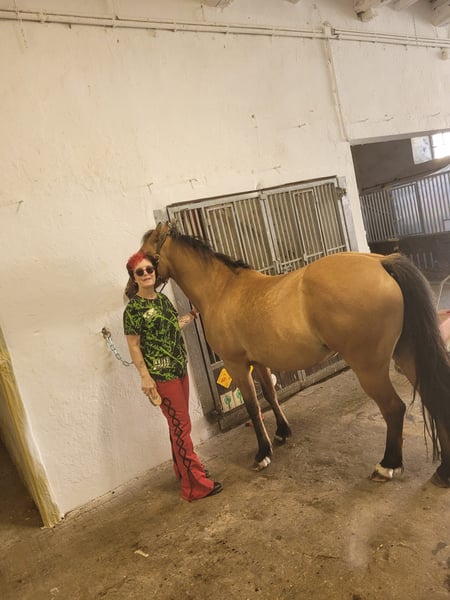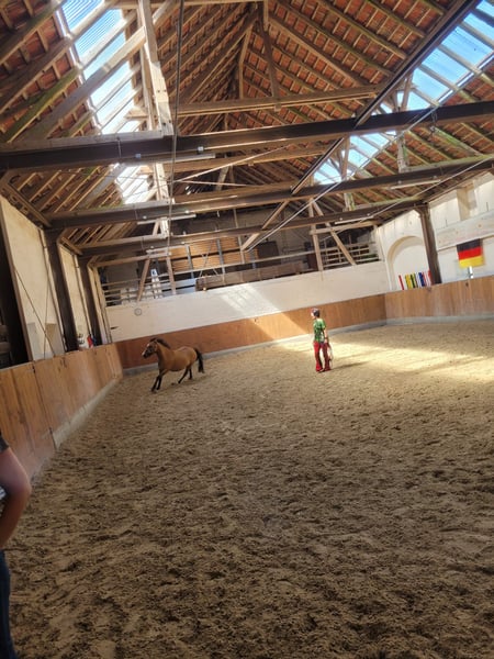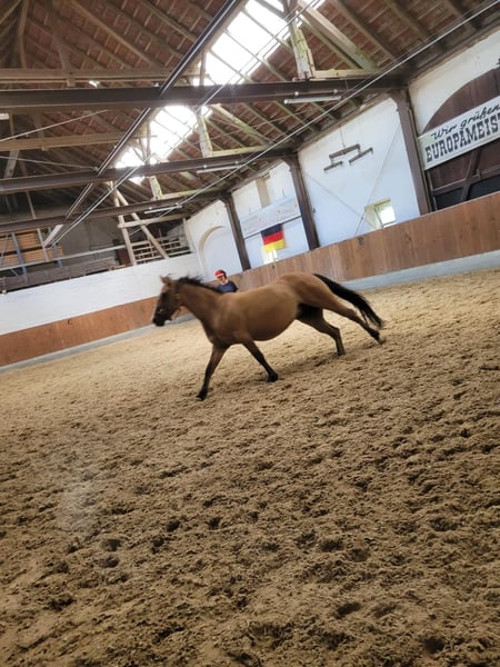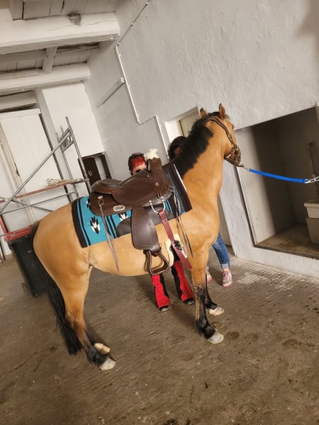 Ich biete meine Ponystute "Amber" zum Verkauf an. Ich habe sie seit 6 Monaten und die Chemie paßt nicht so, wie ich es mir wünsche. Sie braucht möglichst tägliche Bewegung und Kopfarbeit. Ich kann ihr zeitlich nicht gerecht werden und möchte sie von daher in passsende Hände geben, die sie fordern können. Sie hat viel Potential, kann mir gut eine Jugendliche oder Mutter/Kind Kombi vorstellen, die Zeit mit ihr verbringen. Sie hat eine "Ponykopf", ist aber immer GUT händelbar. Im Gelände braucht sie noch mehr Erfahrung, aber mit Übung wird das sicherlich auch klappen. Gern versende ich weitere Bilder über persönliche Anfrage. Einen passenden Sattel und Trense gebe sind incl. Bitte Anfragen unter bb.pg@magenta.de