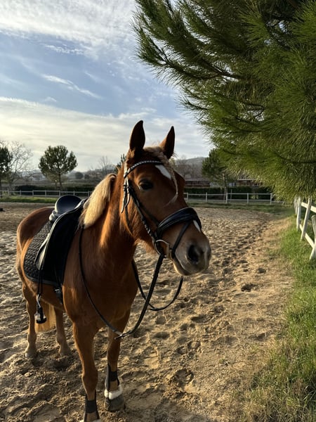 Hello, Due to personal reasons, I need to sell my pony mare, Lotti. She is a 7-year-old Haflinger / German Riding Pony mare standing at 1.47 meters. Lotti is very gentle and people-oriented, but not suitable for beginners. She is versatile and can be used for everything from free jumping to trail riding. In dressage, she has been trained up to A-Dressage Level Two Stars, and in jumping up to 1.00 m – she can also jump higher when free jumping. She has a lot of potential, especially in jumping. Trail rides and even bathing are no problem for her. She is also very sweet with children, although she can test boundaries occasionally. The sale includes all accessories: two new custom-fit saddles (a dressage saddle and a all-round saddle), halter, bridle, and more. If interested, please contact me – the price is negotiable.