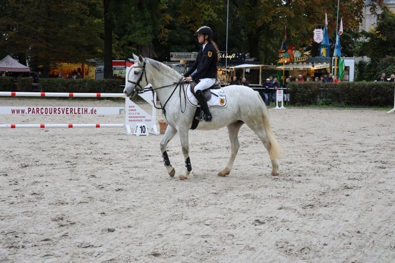 For sale: German Riding Pony mare – ideal for ambitious riders! This elegant grey mare was born in 2017 and impresses with her excellent pedigree and friendly temperament. Standing at 14.8 hh, she is perfect for riders seeking a reliable and versatile horse. She demonstrates great talent in jumping and already shows impressive performance in this discipline. Her agility and jumping ability make her a promising partner for competition or demanding leisure riding. Please feel free to contact me for more information or to arrange a viewing. A wonderful horse for those looking for a dependable and talented riding pony!