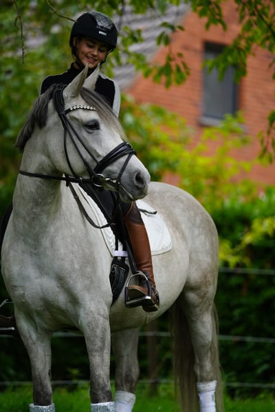 Ogłoszenie sprzedażowe: WYMARZONA kucykowa klacz Urocza klacz, pieszczotliwie nazywana „Keks“, jest dostępna na sprzedaż. Już odnosiła sukcesy na turniejach w klasie A w ujeżdżeniu, a także była klasyfikowana w skokach przez przeszkody w tej samej kategorii. Zna więc atmosferę zawodów i jest zawsze bardzo spokojna w obcych otoczeniach (brała między innymi udział w konkursie z prowadzeniem na smoczku z pięcioletnim dzieckiem i poradziła sobie świetnie). Z wysokością w kłębie 147 cm i bardzo dobrze zbudowaną sylwetką, ta urocza kucykowa klacz doskonale sprawdzi się również dla dorosłych jeźdźców! Jest absolutnie łagodna, zarówno na placu, w hali, jak i w terenie, niezależnie od pogody – zawsze daje z siebie wszystko i sprawia, że jazda jest prawdziwą przyjemnością. Keks pochodzi z 2017 roku i ma znakomite pochodzenie (Dressman IV x Danny Gold). Ma serce z złota i zawsze stara się zrobić wszystko dla jeźdźca. Z nią można robić różne szaleństwa, na przykład galopować bez siodła i na uzdę na polu, czy inne zabawy, a ona zawsze reaguje bardzo łagodnie. To po prostu klacz z serca na właściwym miejscu. Jeśli jesteś zainteresowany lub chcesz uzyskać więcej informacji, zapraszamy do kontaktu!