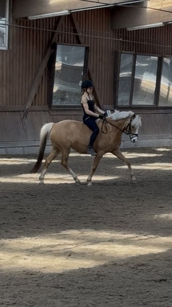 Vendo per motivi personali la mia cavalla di Pony tedesco, nata nel 2017, di colore palomino, con un'altezza al garrese di 140 cm. Bona è molto delicata da montare, risponde dolcemente alle redini ed è generalmente piuttosto sensibile. Tuttavia, ha una mente molto lucida ed è sempre facile da gestire. Ha un buon slancio in avanti e si può cavalcare sia senza sella, sia da sola o in gruppo in passeggiata. Ha già affrontato qualche piccolo salto, divertendosi molto, ed è sempre motivata e desiderosa di imparare. È anche molto obbediente nel suo comportamento. Finora è stata montata principalmente per il tempo libero e non ha esperienza in competizioni. Anche se appare dolce e tranquilla, le piace mettere alla prova i limiti. Non è mai cattiva, è tipico del pony. Spesso monta un bambino piccolo, 1-2 volte a settimana, con buoni risultati, ma a causa del suo carattere sensibile non la considero un pony adatto ai principianti assoluti. Un bambino più esperto, con supporto di un adulto, potrebbe comunque divertirsi molto con lei. Vendita non a scuole o istituti scolastici. Lo scorso agosto ha avuto un incidente in paddock, dove si sono lacerate tre fasce muscolari sull’addome e il tendine estensore posteriore sinistro. Gli organi interni non sono stati coinvolti! Entrambe le ferite sono state operate con successo e non presenta conseguenze, può essere montata normalmente. Anche l’alimentazione non richiede particolari attenzioni. Certificato della clinica disponibile. È possibile fare un provino e conoscerla più volte, senza problemi. Potrei anche considerare una vendita con opzione di riacquisto.