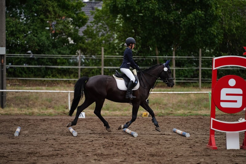 „Paradis pour l'Amour“ – Erfolgreiche Sportstute für Fahr- & Reitsport Zum Verkauf steht eine bildschöne, 2017 geborene Deutsche Reitponystute, die durch ihre Leistungsbereitschaft, ihre Doppelveranlagung und ihren einnehmenden Charakter besticht. Die Rappstute (Stockmaß 148 cm) stammt ab von No Limit aus einer Plaisier-Mutter. 2023 hat sie ein gesundes Stutfohlen zur Welt gebracht und sich als fürsorgliche Mutter gezeigt. Sportliche Erfolge Fahrsport: Ein absolutes Verlasspony vor der Kutsche. Siegreich in Klasse A und mehrfach platziert in Klasse M (alle Disziplinen). Sie ist voll im Training und kann sofort in die laufende Saison starten. Reitsport (Turnier): Vielseitig erfolgreich! Platziert in A-Dressur und A-Springen. Zudem ist sie die perfekte Lehrmeisterin für Kinder: Siegreich und platziert in WBO-Prüfungen von der Führzügelklasse/Caprilli bis hin zu E-Dressur und E-Springen. Zuhause wurden L-Lektionen bereits spielerisch begonnen. „Paradis“ ist eine ehrliche, arbeitswillige und dominante Stute, die im Sport immer ihr Bestes geben möchte. Sie besitzt einen positiven Arbeitseifer und denkt im Parcours mit – sie hilft ihrem Reiter und macht Distanzen auch mal passend. Im Umgang mit Kindern zeigt sie sich stets vorsichtig und umsichtig. Wir sehen in ihr auch eine Perspektive für die Vielseitigkeit: Sie bringt die nötige Neugier und Galoppierfreude mit und präsentiert sich im Gelände sehr mutig und gehfreudig, auch wenn sie in diesem Bereich bisher noch nicht gezielt gefördert wurde.“ Sie ist schmiede- und verladefromm, regelmäßig geimpft, entwurmt und zahnärztlich kontrolliert. Die Abgabe erfolgt schweren Herzens ausschließlich aus gesundheitlichen Gründen des Besitzers. Preis: 20.000 € VHB (inkl. passendem Sattel und Trense) Besichtigung nach Terminvereinbarung möglich. Um Reit- und Fahr-Tourismus vorzubeugen, berechnen wir 30 € pro Termin (bei entsprechender Qualifikation), die bei Kauf selbstverständlich verrechnet werden. Umfangreiches Videomaterial kann bei ernsthaftem Interesse gerne versendet werden.