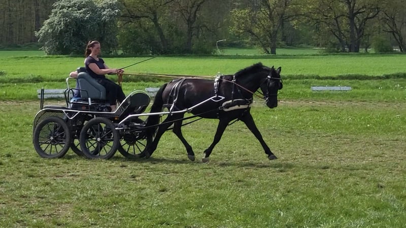 "Paradis pour l'Amour" – Successful Competition Mare for Driving & Riding Sports For sale is a stunning, born in 2017 German Riding Pony mare, distinguished by her willingness to perform, her dual aptitude, and her charming personality. This Rappstute (height 148 cm) is by No Limit out of a Plaisier mare. In 2023, she foaled a healthy filly and has proven herself as a caring mother. Sporting Achievements Driving: An absolutely reliable pony in harness. Successful in class A and multiple placings in class M (all disciplines). She is fully in training and ready to start the current season immediately. Riding (Competition): Versatile success! Placed in A dressage and A jumping. She is also the perfect teacher for children: successful and placed in WBO tests from lead-rein/Caprilli up to E-dressage and E-jumping. At home, L-level lessons have already been started playfully. "Paradis" is an honest, eager-to-work, and confident mare who always strives to do her best in sport. She has a positive work ethic and thinks along in the course – she assists her rider and can adjust distances when needed. She always shows caution and prudence when working with children. She is farrier- and loading-trustworthy, regularly vaccinated, dewormed, and dental checked. The sale is made with a heavy heart solely due to the owner’s health reasons. Price: €20,000 negotiable (including suitable saddle and bridle) Viewing by appointment only. To prevent riding and driving tourism, we charge €30 per appointment (if qualified), which will be credited upon purchase. Extensive video material can be sent upon serious interest.