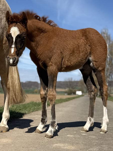 Unser Gänseblümchen zieht uns jeden Tag wieder in Ihren Bann. Sie ist ein keckes, wunderschönes im Hengstyp stehendes Püppchen in einer traumhaften Kohlfuchsfarbe . Ihre Mutter steht ebenfalls aufgrund Bestandsreduzierung und erneut tragend von Golden Grey, zum Verkauf. Die Mutter ist eine Verbandsprämienstute, welche Ihre SLP gewann. Zum Vater muss man glaube ich nichts mehr schreiben, einfach ein Starvererber ! Das kleine Gänseblümchen sucht nun ihr Traumzuhause
