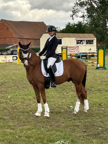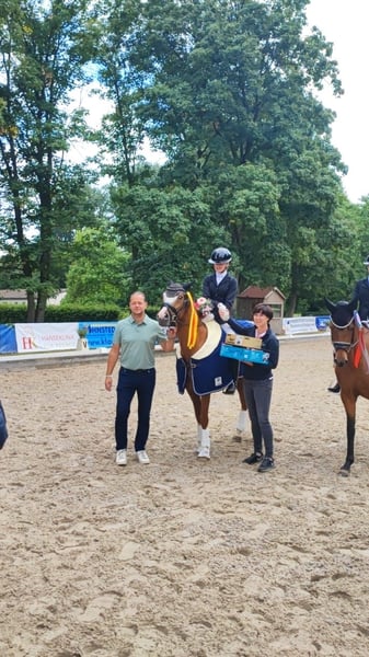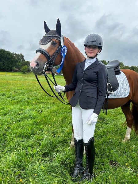 Crown, Ist ein sehr hübsches Ponywallach mit bester Abstammung. Er verfügt über 3 überdurchschnittliche Grundgangarten und ist sehr fein zu reiten. Er ist dressurlich super sehr gut ausgebildet (M Niveau) und kann viele Platzierungen und Siege in der L Dressur vorweisen. Auch auf FEI Niveau. Am Sprung ist er motiviert und will immer auf die andere Seite. Im Springen zeigt er genau so viel Potential wie in der Dressur und ist daher auch super als Vielseitigkeitspony geeignet. Hier ist er A und L springen patziert. Er ist im Moment ein Kaderpony. Er ist immer lieb und kopfklar und lässt sich sehr gut von judendlichen händeln. Er zeigt extrem viel Qualität in der Bewegung und am Sprung als Hunter für die USA. Wurde gekört!!! Bundeschampionats Finalist der 5 jährigen Springpferde. Schmiede- und Verladefromm. Tüv sehr gut.