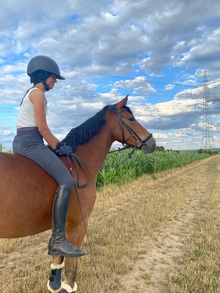 Wegen Umstieg aufs Großpferd unserer Tochter geben wir schweren Herzens unseren 10-jährigen Cookie ab. Er ist ein wundervolles, bildschönes Pony, das durch seine Doppelveranlagung bestens für vielseitige Reiter geeignet ist. Mit fünf Jahren direkt vom Züchter zu uns gekommen, wurde er immer fein geritten und schonend Schritt für Schritt in Springen, Dressur und Gelände weiter ausgebildet. Im Alltag ist er ein fröhlicher Quatschkopf, der für jeden Spaß zu haben ist, kennt Bodenarbeitslektionen, Baden im See, Reiten mit Halsring und ohne Sattel. Wenn er zwar konsequent aber ohne Druck geritten wird, wächst er über sich hinaus. Deshalb sehen wir ihn nicht als Anfängerpony sondern in den liebevollen Händen eines schon etwas fortgeschritteneren Reiters, der seine Vielseitigkeit schätzt und ihn weiter fördert, ohne ausschließlich auf Turniererfolge abzuzielen. Cookie ist kerngesund und deckt auch größere und schwerere Reiter sehr gut ab. Er ist regelmäßig geimpft, entwurmt und beim Zahnarzt vorgestellt (zuletzt 3/26) und hat gesunde, gute Hufe (bei uns für Geländestollen 4-fach beschlagen). Eine Auswahl seiner Erfolge: 1. Reserve beim Bundeschampionat der 6-jährigen Geländeponys L-Dressur ausgebildet A-Dressur mehrfach platziert Zahlreiche Siege und Platzierungen in E- und WBO-Dressur L-Springen ausgebildet und vorgestellt A**-Springen gewonnen Zahlreiche Siege und Platzierungen von WBO- bis A-Springen A-Gelände ausgebildet und vorgestellt E-Gelände und VE gewonnen IGV-Hessen-Trophy gewonnen Landesnachwuchsvierkampf gewonnen, Bundesnachwuchsvierkampf vorgestellt Bei Interesse oder Fragen freuen wir uns auf Kontaktaufnahme.