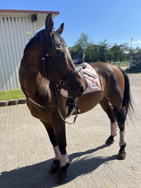 Grzeczny 10-letni kucyk wałach (wysokość w kłębie ok. 1,52 m) na sprzedaż No Limit, nazywany również Norbertem, ma dobre GGA, jest grzeczny w obcowaniu, towarzyski i lubi dzieci. Regularnie jeździ się nim na hali, na placu i w terenie. U mnie był głównie trenowany w ujeżdżeniu i ma już trochę doświadczenia w zawodach w mniejszych próbach WBO. Tam prezentuje się grzecznie i otrzymał ocenę w zakresie 8. (Nie dla osób z dużymi ambicjami turniejowymi). Dużą radość sprawia mu również skakanie, chociaż nie było to regularnie rozwijane u mnie. Obecnie ma podkowy klejone, które można jednak zmienić na gołe kopyta, wtedy jednak potrzebuje ochraniaczy w terenie. Przebywa u nas w ciągu dnia w stadzie wałachów na zewnątrz, a w nocy w boksie z paddockiem. Jest bardzo towarzyski z innymi. Sprzęt może być przejęty za dodatkową opłatą. Posiadamy zdjęcia rentgenowskie z 2025 roku, które można obejrzeć. Miejsce przed ceną. W razie dalszych pytań i zainteresowania proszę dzwonić lub kontaktować się przez WhatsApp pod numer 01604085276. Aby wykluczyć turystykę jeździecką, pobieram 30 € za jazdę próbną, które oczywiście zostaną odliczone przy zakupie.