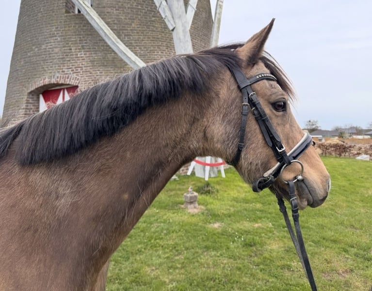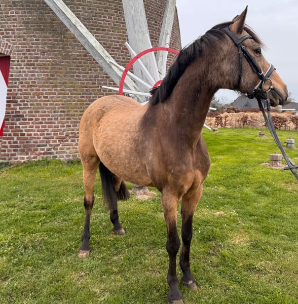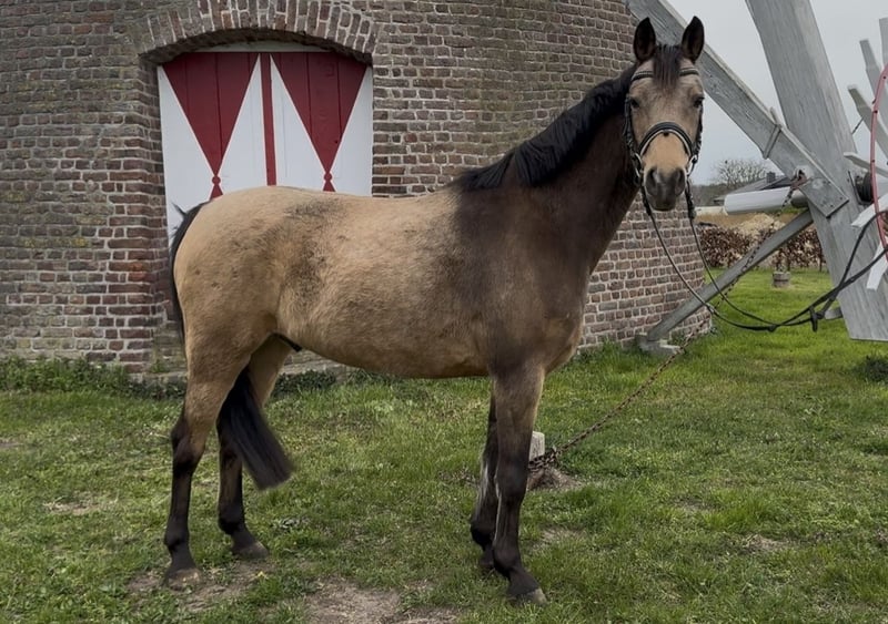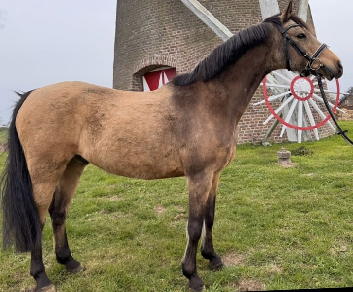 Zum Verkauf steht ein wunderschöner, 11-jähriger Wallach in der seltenen Farbe Braunfalbe mit einem Stockmaß von 146 cm. Abstammend von FS Champion de Luxe aus einer Elb Brilliant Mutterlinie bringt er nicht nur eine interessante Genetik, sondern auch viel Qualität und Charakter mit. Dieser hübsche Wallach überzeugt durch sein ausgeglichenes und freundliches Wesen. Er ist sowohl im täglichen Umgang als auch unter dem Sattel ein absoluter Schatz. Kinder und Amateure kommen mit ihm bestens zurecht – er ist brav, unkompliziert und immer motiviert bei der Arbeit. Beim Reiten zeigt er sich zuverlässig und angenehm zu sitzen. Auch im Springen macht er eine gute Figur: Kleine Parcours meistert er problemlos und zeigt dabei stets Freude und Ehrgeiz – er möchte einfach immer auf die andere Seite des Sprungs. Gesundheitlich steht er top da: Er war bisher nie krank oder lahm. Zudem ist er sehr sozial und verträglich mit anderen Pferden, egal ob auf der Weide oder im Stall. Ein tolles Pony für Freizeit, Einstieg in den Turniersport oder als verlässlicher Partner für Kinder und Jugendliche. Bei ernsthaftem Interesse freuen wir uns über eine Nachricht!