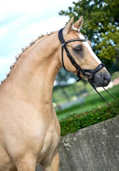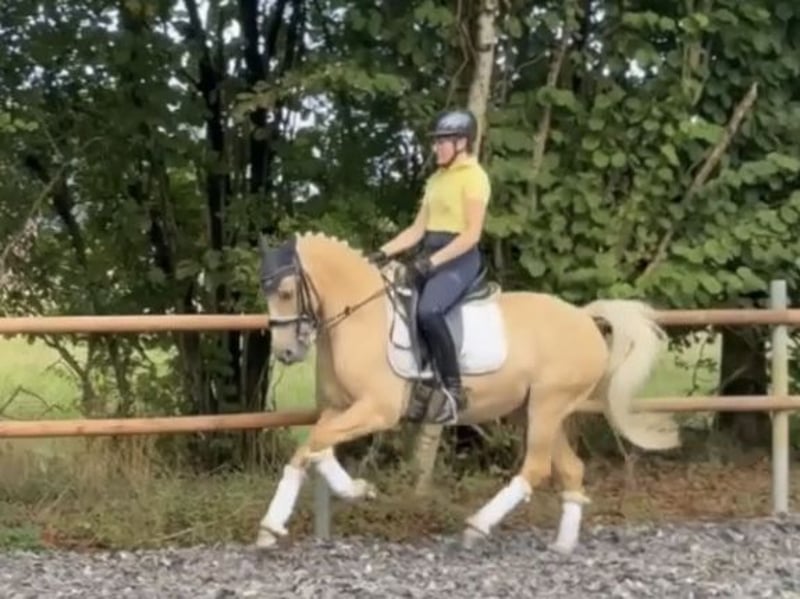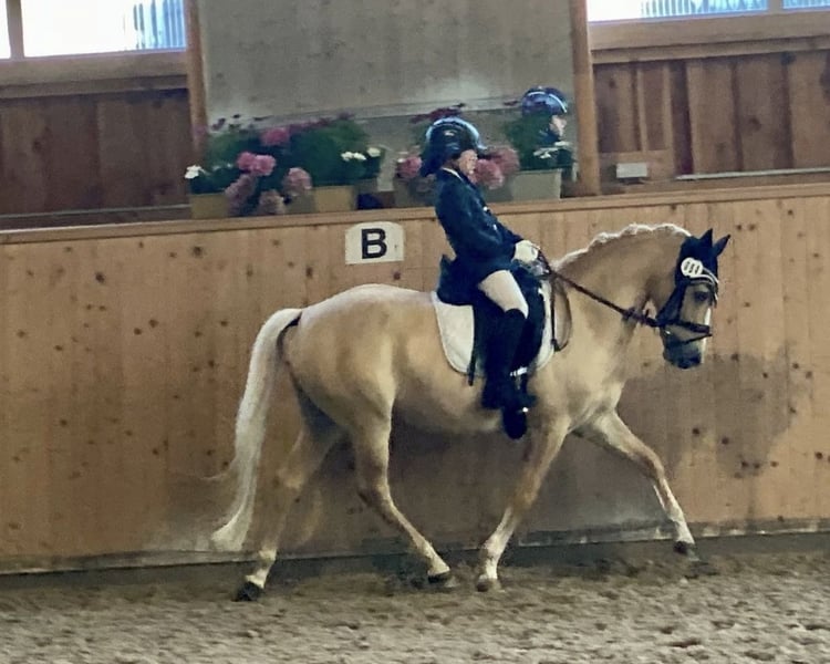 We are offering an absolute dream pony to the right home. Goldi is an 11-year-old palomino gelding, who has been placed from the rider competition up to A** dressage under his nine-year-old rider and has also been trained and placed by the trainer up to class M. With her, he has also won several L competitions. He is easy to ride, is familiar with side reins and lunging, and tolerates this without any issues. There are no problems with trailer loading, transporting, or the farrier. Riding out alone or in a group is also possible with him, which he greatly appreciates. He would be well-suited for a strong-riding mother/trainer and child duo or a teenager/adult who already rides confidently at A level. A requirement for his future living situation is open stable housing or year-round all-day turnout with only nighttime stabling. This is actually the only reason for his sale, as it is extremely important to the owner that the pony is happy, and this type of housing is not possible at the current stable. For the initial trial ride, we charge a fee of 30 euros. Please discuss price negotiations in person during the trial.