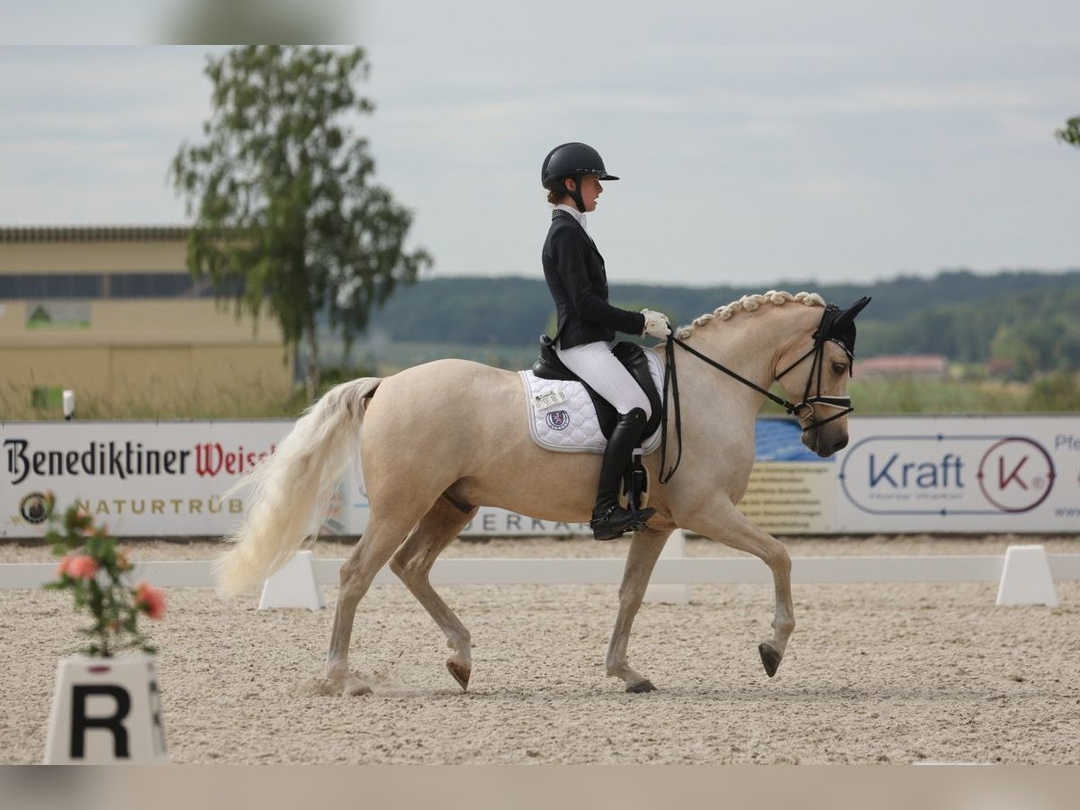 Glitzerflitzer is een betrouwbaar en rustig pony dat zijn ruiter altijd veiligheid biedt. Vooral in stap en galop overtuigt hij met veel kwaliteit, takt en een prettig zitgevoel. Hij heeft meerdere pony-FEI wedstrijden gelopen en is geplaatst, met een score tot 69,*%. In de nationale klasse heeft Glitzi verschillende L-dressuren gewonnen, onder andere met cijfers tot 8,5. Daarnaast is hij meerdere keren gestart op de Zuid-Duitse Pony Kampioenschappen en op de Hessische Kampioenschappen. Hij is zeer braaf in omgang, helder van geest en daardoor ook in nieuwe situaties kalm, of het nu op het concours, tijdens training of in het dagelijks leven is. Hij wil zijn ruiter altijd behagen en werkt gemotiveerd mee. Glitzi is ideaal voor een ambitieuze jonge ruiter die op zoek is naar een pony waarop je kunt vertrouwen en waarmee je samen kunt blijven groeien. FEI-meten. Video op aanvraag.