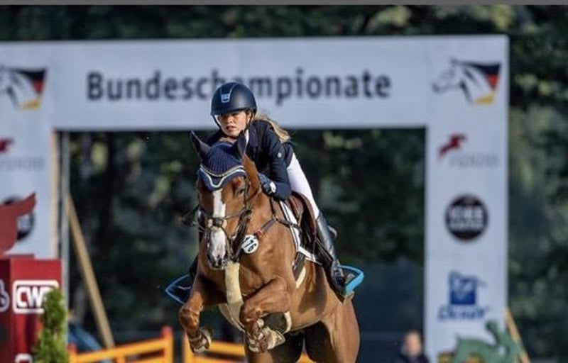 Na sprzedaż wystawiamy niemieckiego wałacha konia sportowego typu Reitpony, urodzonego w 2015 roku, o wzroście 147 cm. Pochodzi od Da Capo z doskonałą matką Nantario i obecnie jest na poziomie szkolenia klasy M*. W zawodach zdobył zwycięstwo w konkursie L, co stanowi solidną podstawę dla młodych jeźdźców, którzy chcą rozwijać się w skokach przez przeszkody. Na parkurze zawsze wykazuje czujność, ambicję i odpowiednią „iskrę”. Szczególnie dobrze radzi sobie w konkursach na czas – wykazuje przy tym dobrą orientację, zaangażowanie i dużą radość z wykonywania zadania. W stilu skoków był już oceniany nawet na 8,8 punktu. Szukający jeźdźca, który zapewni mu poczucie bezpieczeństwa, spokojnie i konsekwentnie na nim siedząc, sprawi, że będzie on zawsze zmotywowany i gotowy do pracy. Na terenie jest zawsze grzeczny – niezależnie od tego, czy jeździ sam, czy w grupie. Kupiliśmy go bezpośrednio od hodowcy, gdy miał 4 lata. W tym czasie jeździł z naszą starszą córką na Mistrzostwach Niemiec młodych koni skokowych dla pięciolatków. Obie nasze córki dorastały z nim, nauczył je wiele i bezpiecznie przeprowadził przez ich pierwsze starty w zawodach. Niestety, z powodu braku czasu, jesteśmy zmuszeni go sprzedać. Wspaniały koń o wysokiej jakości i wielkim sercu – idealny dla ambitnych młodych jeźdźców.