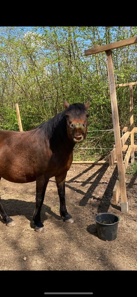 Con gran pesar, vendemos nuestro pony de ensueño debido a la falta de jinete. Ya había sido vendido, pero por motivos personales y de tiempo, se decidió no continuar con la compra. Dado que en los últimos meses no se ha trabajado mucho con él y ha perdido algo de peso, se vende por mucho menos de su valor. Es muy tranquilo en todo, acepta la herradura y el transporte sin problemas, camina solo y en grupo por el campo. Es agradable para montar en doma y también hace saltos, aunque no hemos trabajado mucho en ello. También permanece solo en el establo o en el paddock sin problema. Actualmente está en un paddock abierto y sería ideal que pudiera seguir allí. Una caja sería también una opción, siempre que pase varias horas al día afuera. No tiene reumas ni eccema. Estuvo con nosotros en el campo durante todo el verano, las 24 horas. Es castrado y no tiene problemas de casco. Para más preguntas, no dudes en contactarnos.