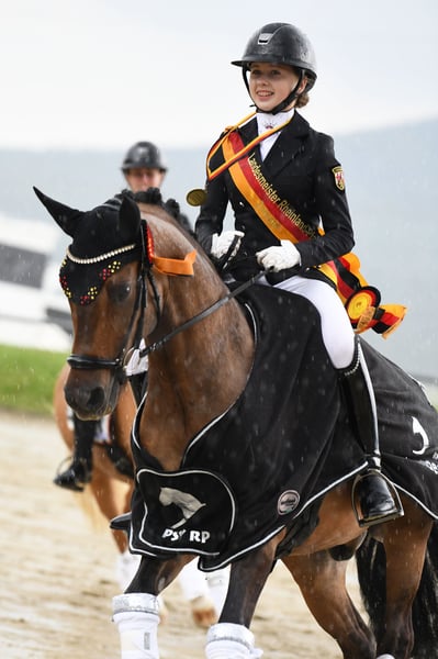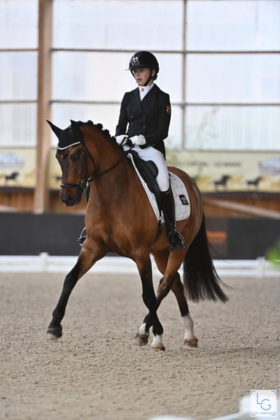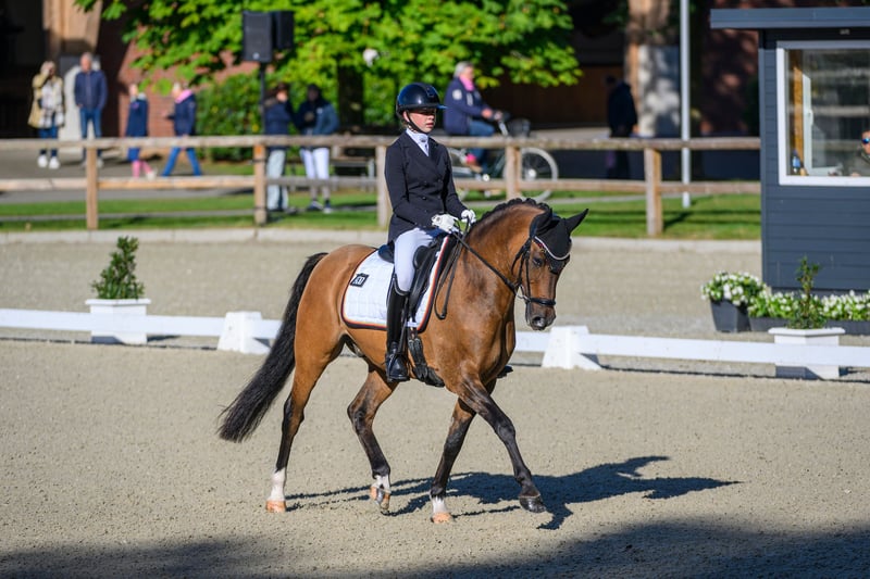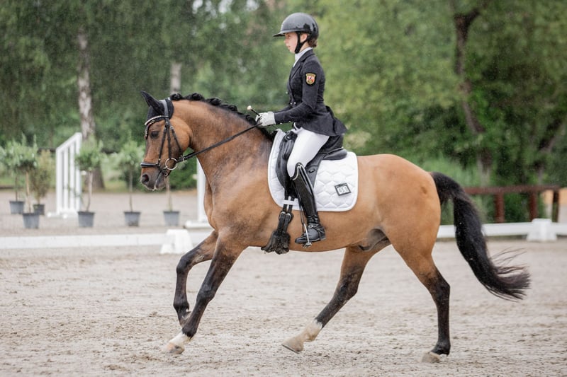Melli’s Diamond – FEI-erfolgreicher Dressurlehrmeister mit herausragender Erfolgsbilanz Melli’s Diamond ist ein hoch erfolgreicher, erfahrener und absolut zuverlässiger Dressurpony-Wallach, der aufgrund des Endes der Ponyzeit in ein neues, förderndes 5-Sterne-Zuhause abgegeben wird. Der 2014 geborene Wallach mit einem Stockmaß von 149,5 cm (mit Eisen) verfügt über einen FEI-Pass und ist ein echtes Verlasspony für den gehobenen Dressursport. Durch seine Souveränität im Viereck, seine Nervenstärke, seine Rittigkeit und seine hohe Lektionensicherheit konnte er in den vergangenen Jahren zahlreiche Platzierungen und Siege bis hin zur Pony FEI Tour auf nationalem und internationalem Niveau erzielen. Er eignet sich ideal als Lehrmeister für ambitionierte Nachwuchsreiter, die ein bereits erfolgreich vorgestelltes und absolut erfahrenes Pony suchen. Vom Einstieg in den gehobenen Dressursport bis hin zur Pony FEI bringt Melli’s Diamond alles mit, was man sich für eine sichere und erfolgreiche Zukunft im Sport wünscht. Auch abseits des Vierecks überzeugt er in jeder Hinsicht: Er ist sehr lieb im Umgang, unkompliziert, kinderfreundlich und im täglichen Handling problemlos zu managen. Erfolge: 2023 & 2024 Bronze bei den Süddeutschen Ponymeisterschaften 2023 Platz 3 bei den Landesmeisterschaften 2024 Landesmeister DJM 2024, 1. Wertungsprüfung Platz 8 mit 70,718 % Bestes Ergebnis: 76,367 % (kein Kürergebniss) Er ist gesund, ohne bekannte Vorerkrankungen, und aktuelle Röntgenbilder liegen vor. Ein Pony für Reiter, die nicht einfach nur ein gutes Pony suchen, sondern einen bewährten Partner mit Qualität, Erfahrung und absoluter Zuverlässigkeit. Anfragen und Terminvereinbarung unter 01784 302448