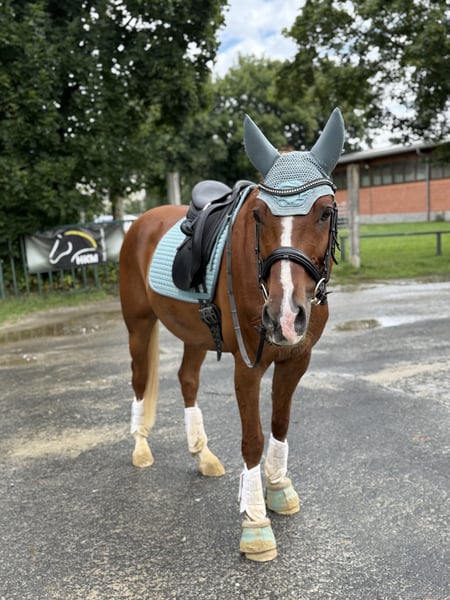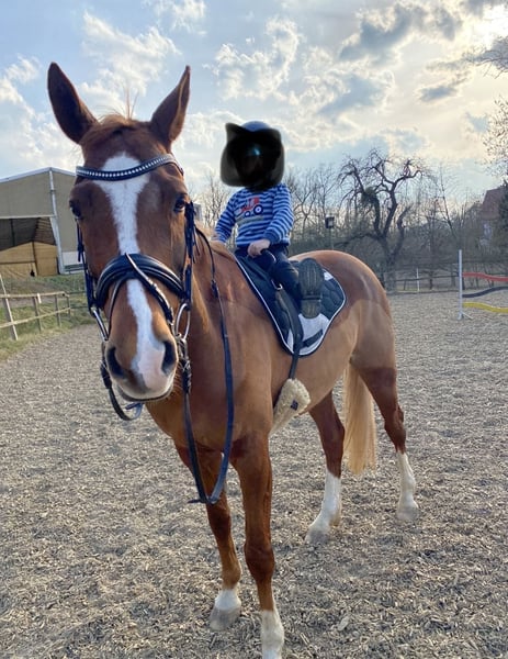 Verkaufe meinen 2013 geborenen wunderschönen XXL Fuchsponywallach. Stm. ca 154 DRP Top Christobell x Bavarottie Chicco steht aktuell in Boxenhaltung mit täglichem mehrstündigem Paddockgang, kennt aber auch Weide- und Gruppenhaltung im Sommer. Er ist sehr sozial und liebt es mit anderen Pferden in Gesellschaft zu stehen. Auch Stuten und Fohlen sind kein Problem. 2019/2020 von der Vorbesitzerin in Dressur, Springen und Geländeprüfungen vorgestellt. Von mir nicht weiter gefördert. Ich bin Wiedereinsteigerin und habe in den letzten Jahren viel von Chicco gelernt. In Dressur und Springen läuft er sicher auf A Niveau. Benötigt allerdings einen schon erfahrenen Reiter der von oben auch mal Sicherheit geben kann. Traumhaft weiche Gangarten die super zu sitzen sind. Er liebt es zu springen. Kein Anfänger- oder Kinderpony! Chicco reagiert auf Heustaub und benötigt gewaschenes/ bedampftes Heu oder Heulage und steht auf Leinstroh/Späne. Er hat dadurch keine Einschränkungen. Chicco hat eine tolle Hufsubstanz und läuft Barhuf. Abzugeben aufgrund gesundheitlicher Probleme meinerseits.