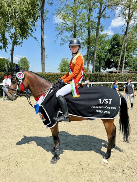 “A unique opportunity for an ambitious rider who wants to take the next steps towards the absolute top with the right guidance!” If you are looking for a pony that has truly seen and done it all (3 European Championships and more than 10 Nations Cups), then this is your chance. Our daughter is now 16 and will move on to the Juniors. Mini, as we call him, is the perfect schoolmaster who can prepare a young rider for a successful future. He measures no more than 147.5 cm but jumps like no other. Mini is sharp and sensitive, yet dressage-wise he is easier to ride than most ponies at his level. He is a pony that has it all. He teaches the child to ride properly, and he will also correct them when mistakes are made repeatedly. At the very highest level there is little room for error; careful, real ponies—not those over 156 cm—are clever, sharp, and the GP is simply high. Because of that, your child truly learns real pony riding. If you are interested, please send me your riding CV and ambitions. Messages asking only “what does he cost?” will not be answered—we take this seriously. If we believe there could be a suitable match, you are of course welcome to come try him. What makes Mini so special: Mini is beautiful, kind, healthy, and very enjoyable to ride. He can clear 1.35m—which is extraordinary for a true D-pony. He has no weaknesses and can teach a young rider to steer, ride, and manage from A to Z. After Mini, with the right horse, you are ready to transition straight into the Juniors. ** top pony price range ** For more information please call or WhatsApp at: 0031610252530