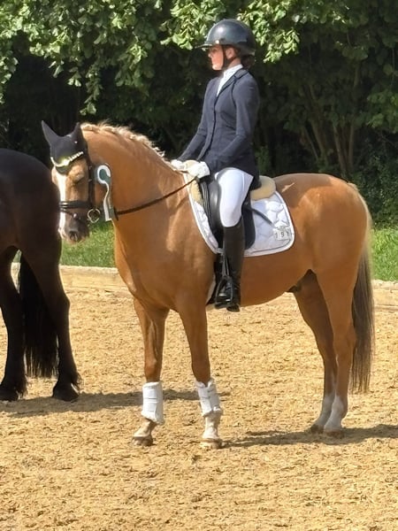 Verkaufe deutsches Reitpony – Wallach, Geburtsjahr 2009, Palomino, Stockmaß 148 cm Unser Dimi ist ein Lehrmeister der besonderen Art. In der Dressur geht er spielerisch die Lektionen bis zur Klasse S und überzeugt auf dem Turnier stets die Richter erfolgreich bis zur Klasse M. Ob im Gelände oder bei kleinen Sprüngen zeigt er sich immer motiviert und will gefallen. Durch die Umstieg auf ein Großpferd müssen wir uns leider von ihm trennen und wünschen uns ein Zuhause, in welchem er ambitionierten Reitern Freude bereiten kann! Dimi ist brav im Umgang, kennt die Arbeit mit Kindern ist dennoch kein reines Anfängerpferd. Bei Interesse oder für weitere Informationen freue ich mich auf Ihre Kontaktaufnahme.