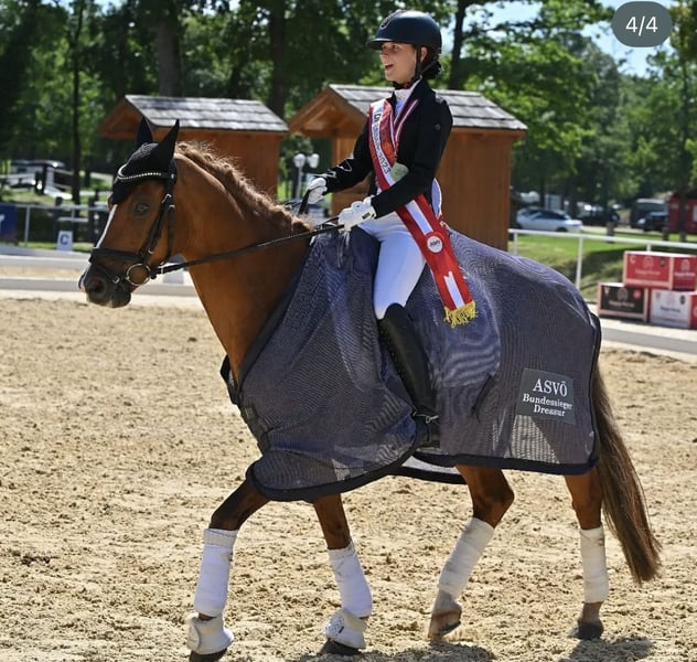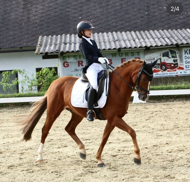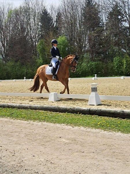Schweres Herzens muss ich mich von meinem kleinen Sunny trennen… Meine Ponyzeit ist vorbei, und ich bin auf Großpferd umgestiegen weshalb er leider ein neues Traum zu Hause sucht. Sunny ist ein absolutes Traumpony, welches immer für seinen Reiter kämpft und sich unglaublich bemüht alles richtig zu machen. Am Turnier wurde er in der Dressur bis Klasse FEI Pony/ FEI Children vorgestellt und war dort auch erfolgreich Platziert. Ausreiten ist mit ihm auch alleine möglich, im Umgang ist er super lieb und handlich und auch für Anfänger geeignet. Er ist ein bildhübsches Pony zum verlieben