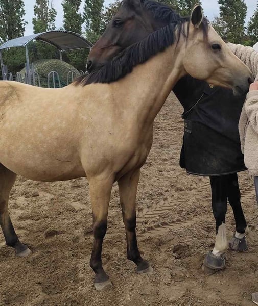 Nur in allerbeste Hände, da er leider für mich zu klein ist. Ende Juni 3 gewordener Wallach. Deutsches Reitpony von Dating AT x Nemax. Wurde dieses Jahr mit 1,40m eingemessen, Buckskin. Das Pony hat einen 5* Traumcharakter, dazu bildschön und bewegungsstark! ⭐️ Mit Championatsqualität. Er kennt Kappzaum, Trense, Longiergurt, Ausbinder, Gamaschen und das Longieren. Reitergewicht, ohne Sattel im Schritt, kennt er auch bereits. Weiter angeritten wurde er aufgrund Reitermangel nicht. Er ist absolut abgeklärt, nervenstark und brav. Kennt kein Drama oder sowas, auch bei neuen Sachen nicht, lernt schnell und einfach. Hat aber auch einen typischen Ponykopf. Wer seinen Zukunftsstar noch selbst formen möchte hat hier das ideale Pony, was in allen Perspektiven glänzt. 95 🥕 VB Für Kurzentschlossene kann über den Preis gesprochen werden :)