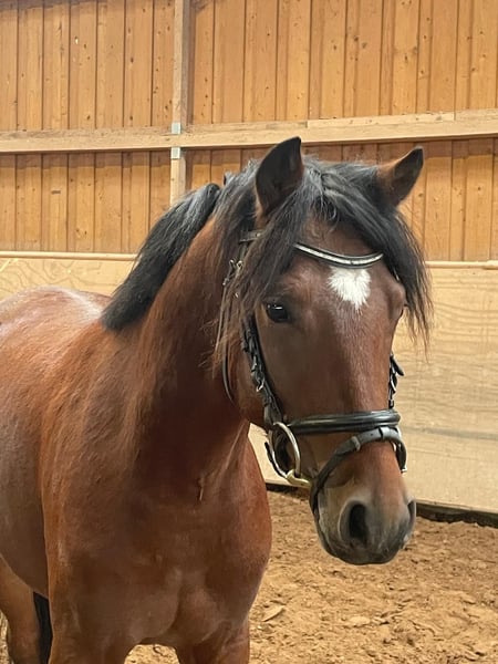 Unser bildschöner Dt. Reitponywallach Mailo empfiehlt sich als tolles Nachwuchspony für Sport und Freizeit. Mailo ist altersentsprechend leicht angeritten und bereitet uns bereits jetzt mit seiner Umgänglichkeit und Lerneinstellung ganz viel Freude. Sein Vater MASSIMO wurde 2024 Vize-Bundeschampion der Vielseitigkeitsponys in Warendorf. Massimo wusste schon als Fohlen zu überzeugen und war Siegerfohlen des Thüringer Championats. Als 3jähriger war er siegreich in Reitpferdeprüfungen und konnte Landeschampion werden. Im Herbst des gleichen Jahres war er Jahrgangsbester der HLP in Neustadt/Dosse mit einer Endnote von 8,38. Im Jahr 2024 startet er dann richtig durch, wurde gleich zweifacher Landeschampion – sowohl bei den Spring- als auch bei den Vielseitigkeitsponys – und krönte die Saison mit der Silbermedaille in Warendorf! MASSIMO’s Vater FS Mr. Right gehört zu den begehrtesten Reitponyhengsten der letzten Jahre. Der Bundessiegerhengst des Jahres 2015 kann inzwischen mehr als 45 gekörte Söhne und zahlreiche Spitzensportler vorweisen, darunter Bundeschampion Movie Star oder den S-Dressur erfolgreichen Mr. Universum. Seine Mutter La Vie war Siegerstute des Sächsisch-Thüringischen Stutenchampionats sowie drittplatziert zur Bundesstutenschau. Neben MASSIMO ist sie auch Mutter des ebenfalls gekörten und HLP-siegreichen Next Level sowie der sächsisch-thüringischen Siegerstute La Fleur. Auch in Mailos Mutterlinie finden sich bedeutende Vererber der Dt. Reitponyzucht, z.B. FS Champion de Luxe , Dressmann I und Darino-Gold. Wir freuen uns auf Mailos weiteren Weg.